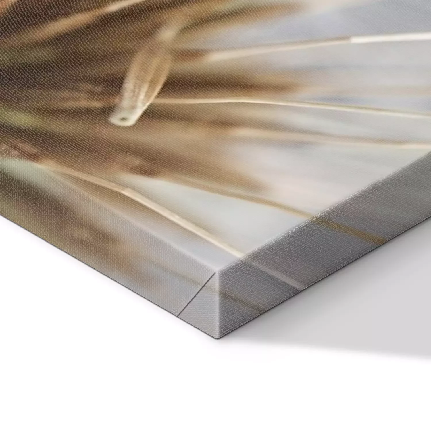 De print wordt aangebracht op hoogwaardig canvas dat op een schildersweefgetouw (spieraam) wordt gespannen. Omdat de print de zijranden bedekt, hoeft het ontwerp niet met een extra kader te worden omlijst. Wij raden ook composities aan die uit meerdere foto's bestaan en zo een coherente compositie vormen.