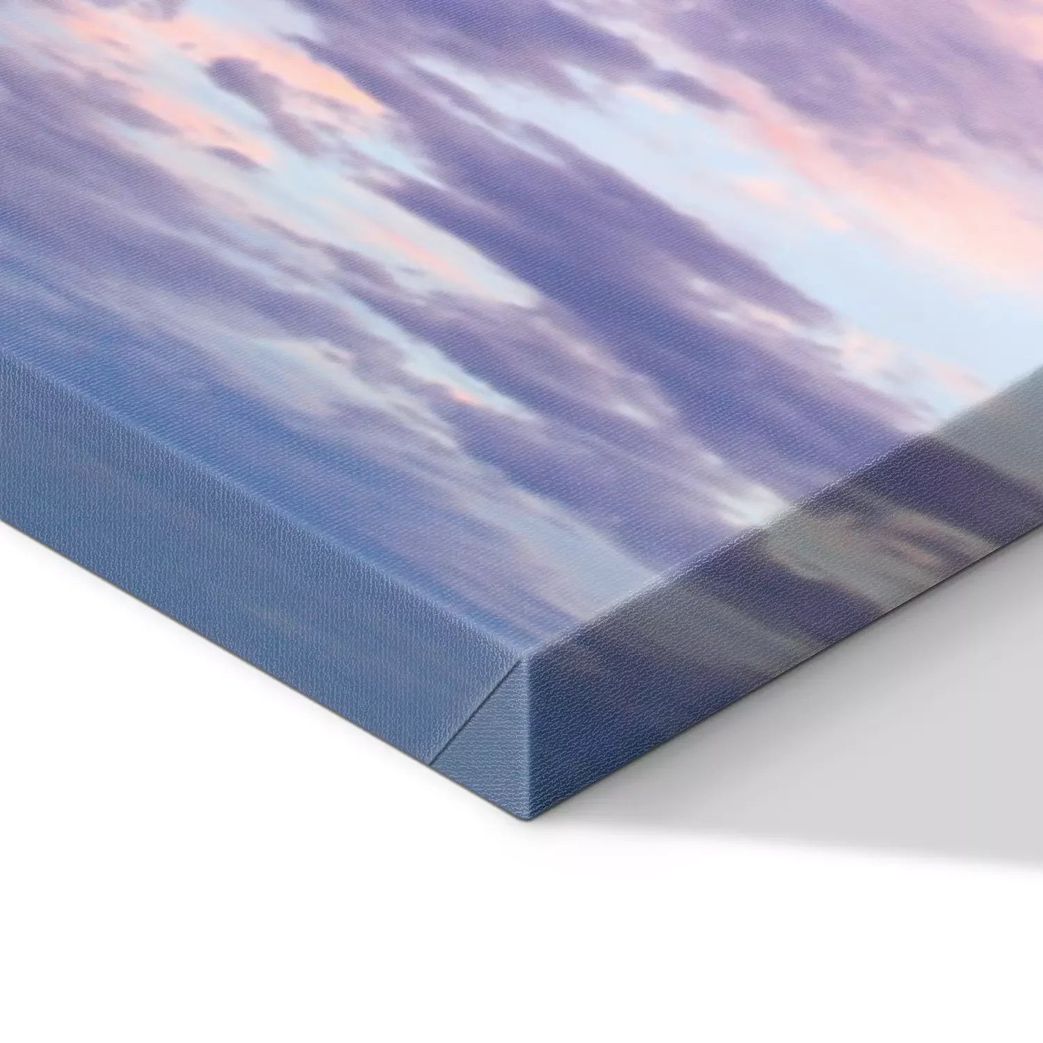 De print wordt aangebracht op hoogwaardig canvas dat op een schildersweefgetouw (spieraam) wordt gespannen. Omdat de print de zijranden bedekt, hoeft het ontwerp niet met een extra kader te worden omlijst. Wij raden ook composities aan die uit meerdere foto's bestaan en zo een coherente compositie vormen.