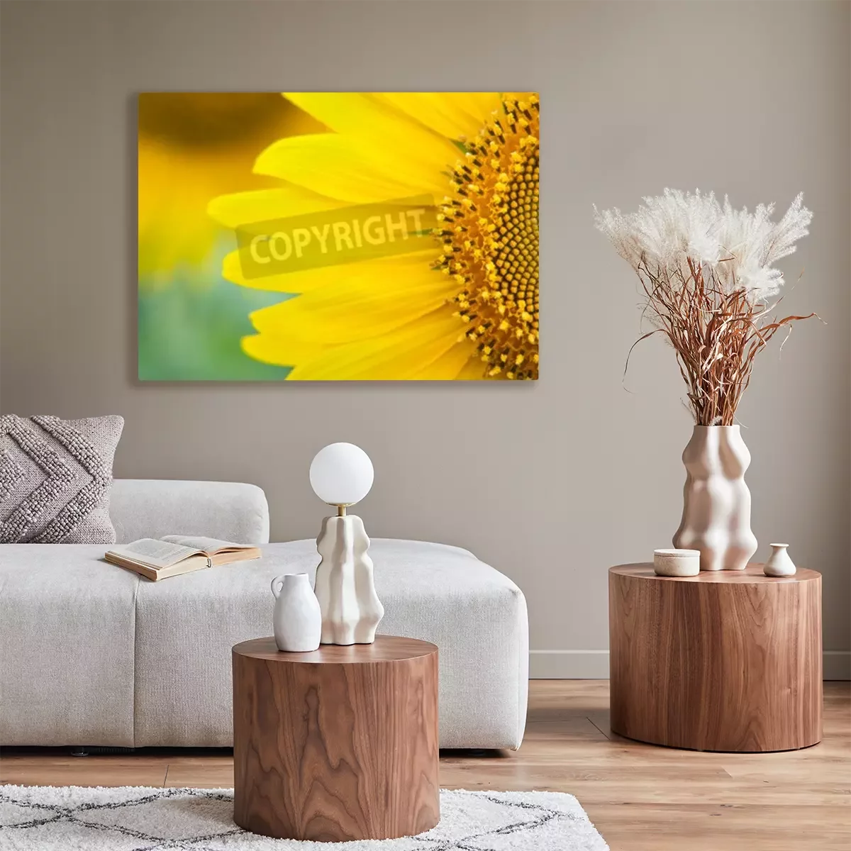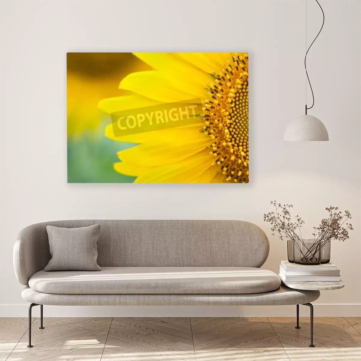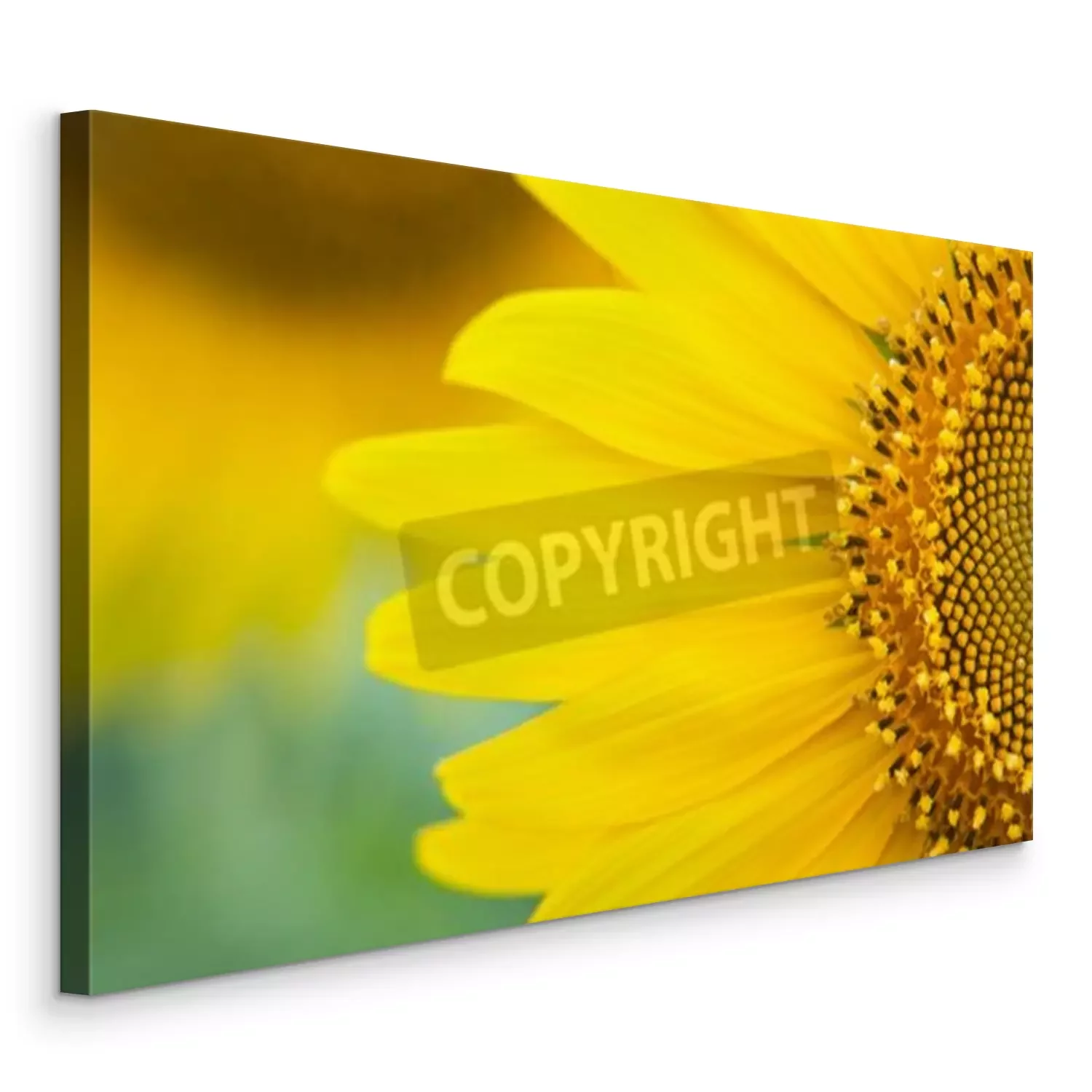 Canvas: Zonnebloem close-up. Heldere gele zonnebloemen. Zonnebloem achtergrond.