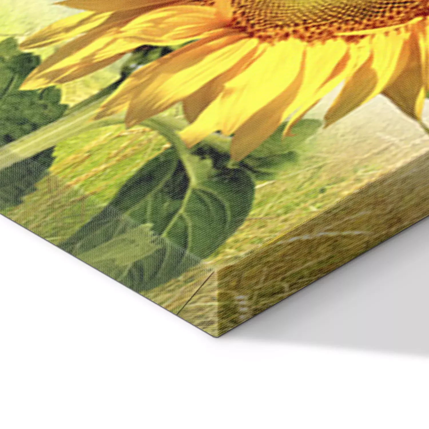 De print wordt aangebracht op hoogwaardig canvas dat op een schildersweefgetouw (spieraam) wordt gespannen. Omdat de print de zijranden bedekt, hoeft het ontwerp niet met een extra kader te worden omlijst. Wij raden ook composities aan die uit meerdere foto's bestaan en zo een coherente compositie vormen.