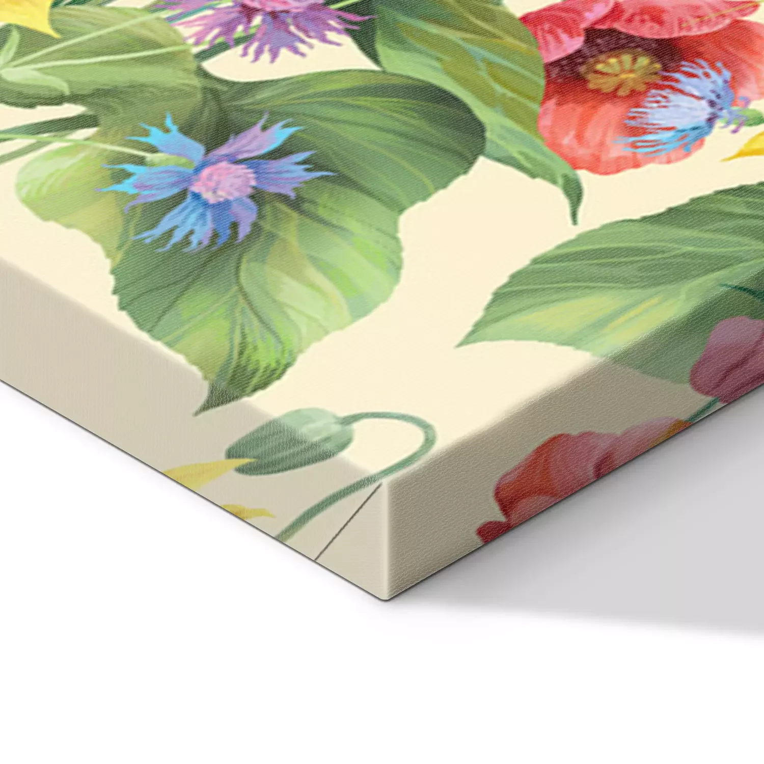 De print wordt aangebracht op hoogwaardig canvas dat op een schildersweefgetouw (spieraam) wordt gespannen. Omdat de print de zijranden bedekt, hoeft het ontwerp niet met een extra kader te worden omlijst. Wij raden ook composities aan die uit meerdere foto's bestaan en zo een coherente compositie vormen.
