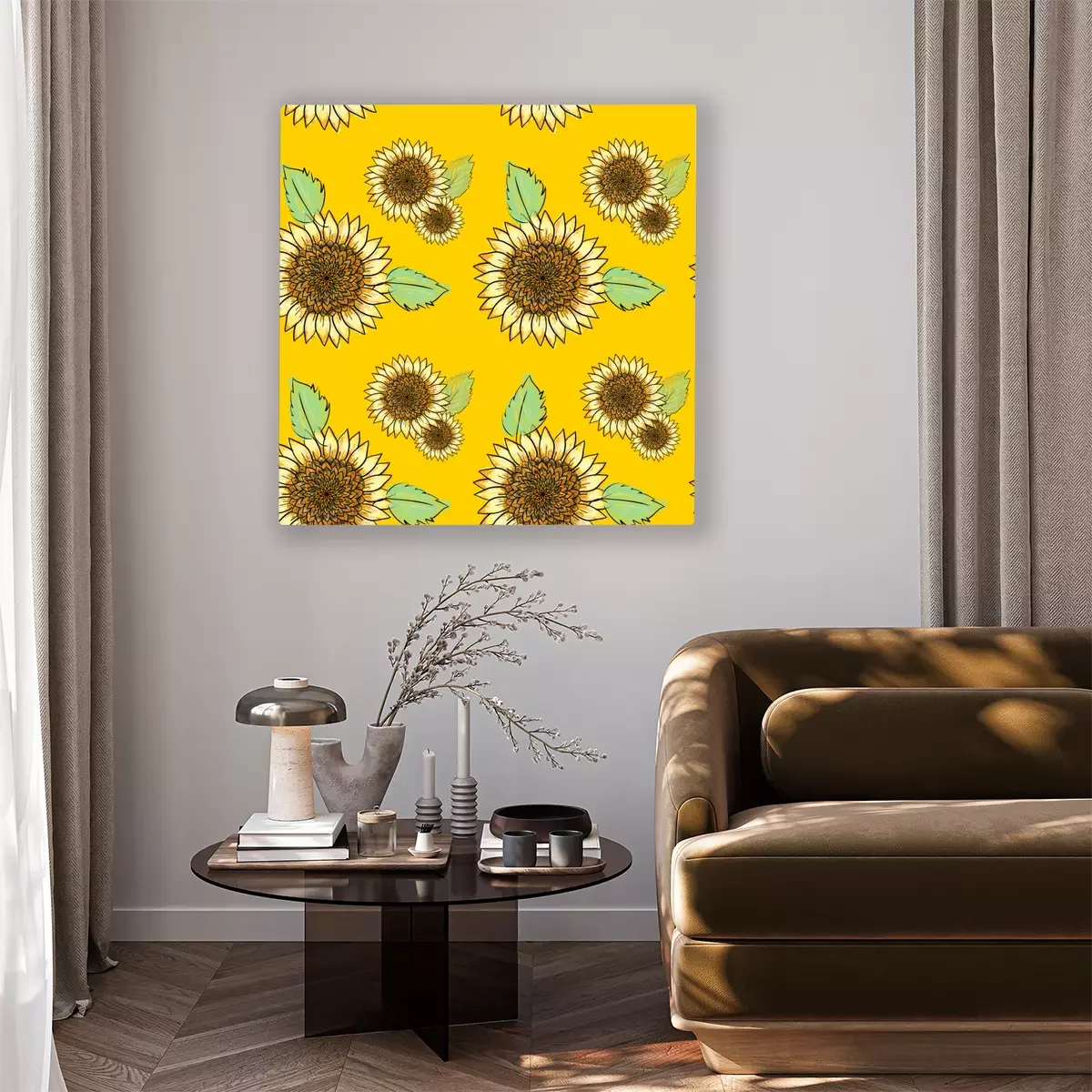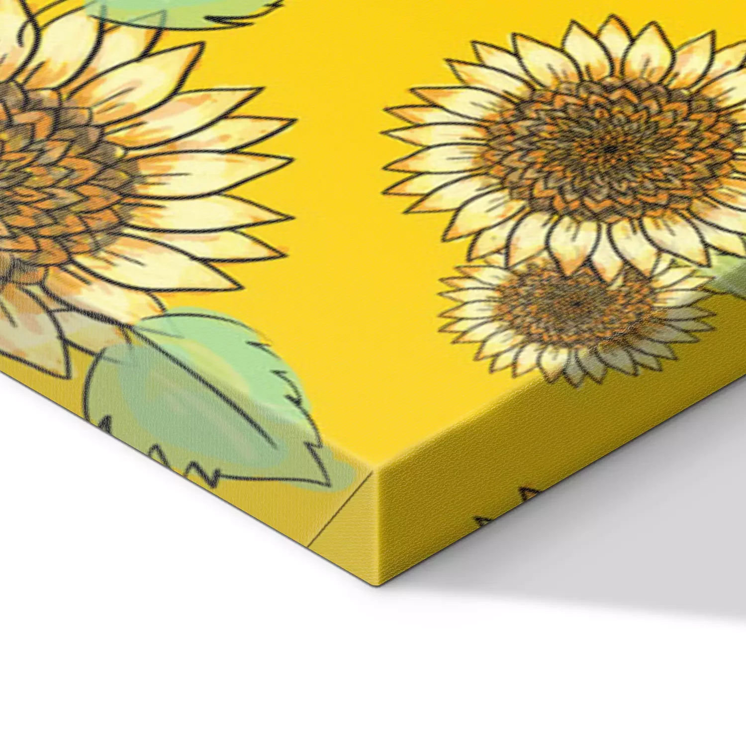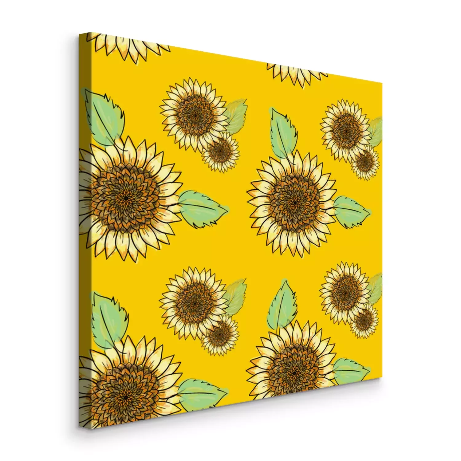 Canvas: Zonnebloemen getekend op een gele achtergrond