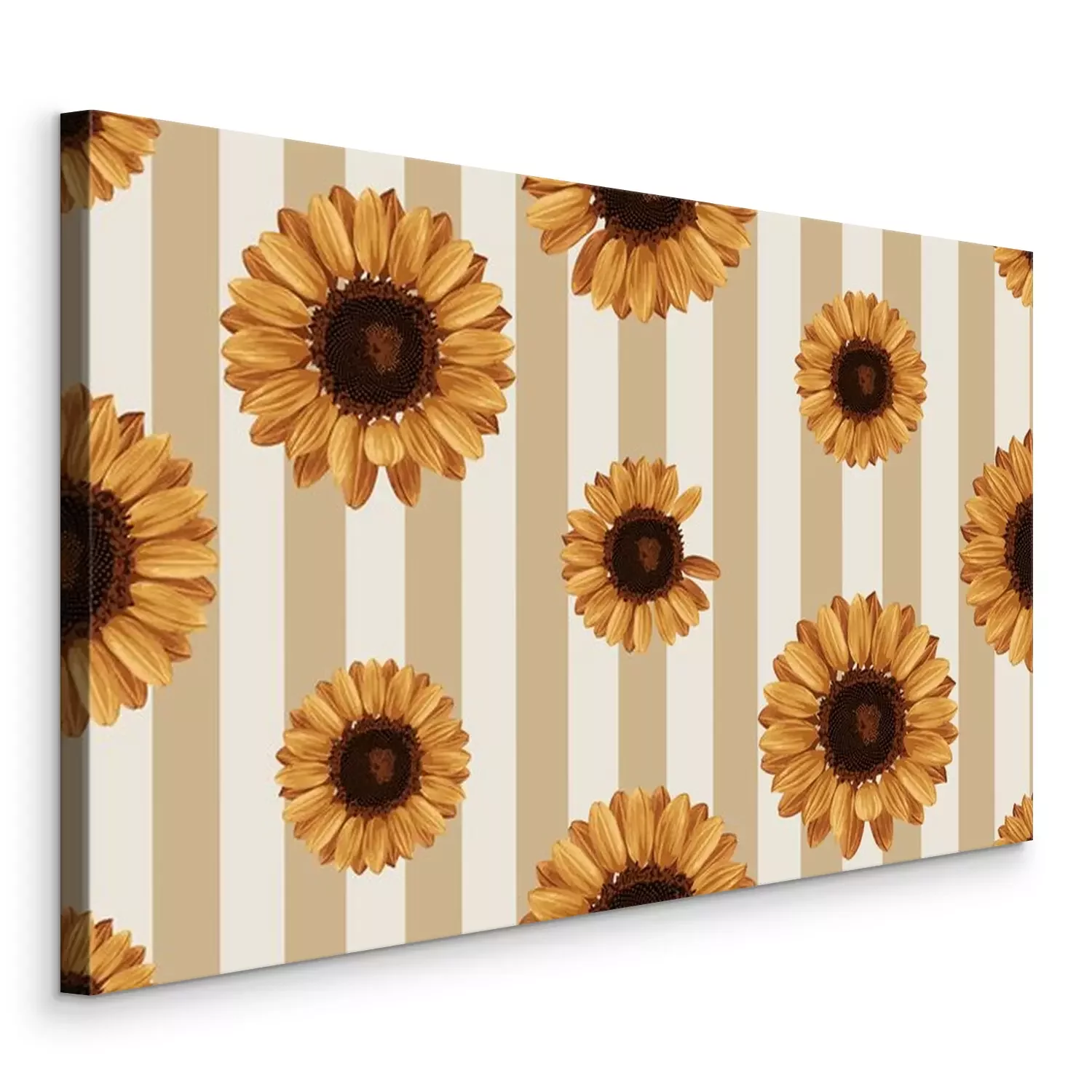 Canvas Zonnebloemen op een achtergrond van strepen