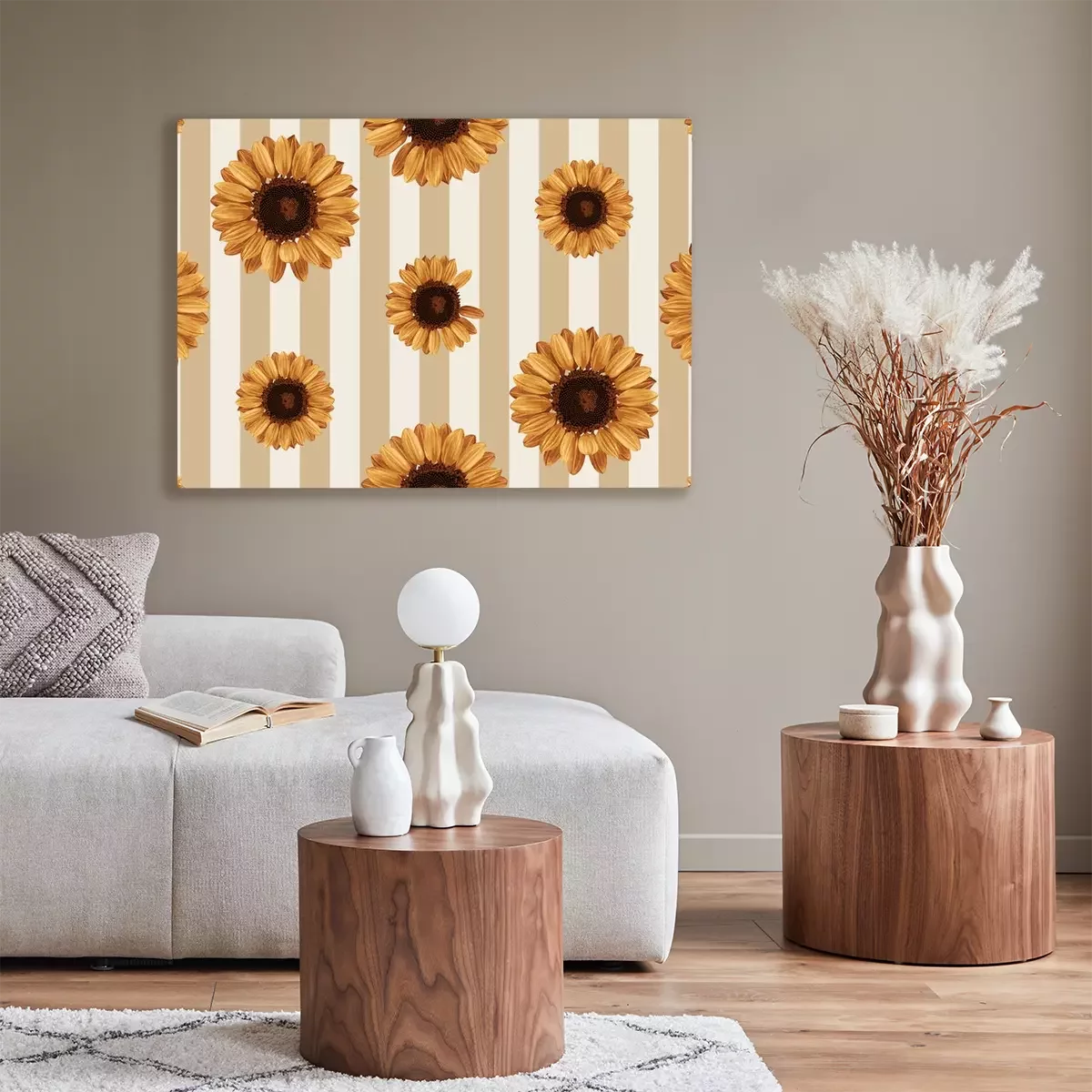 Canvas: Zonnebloemen op een achtergrond van strepen
