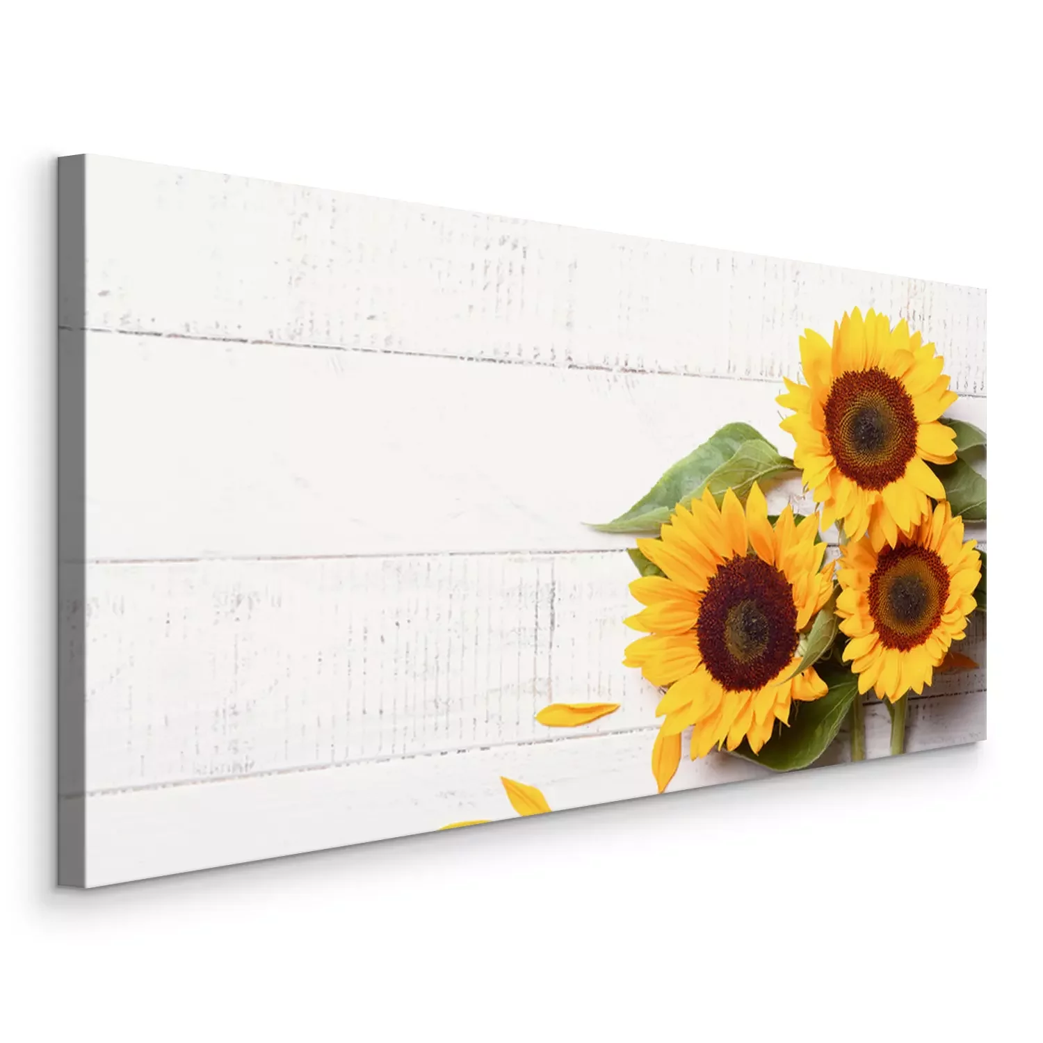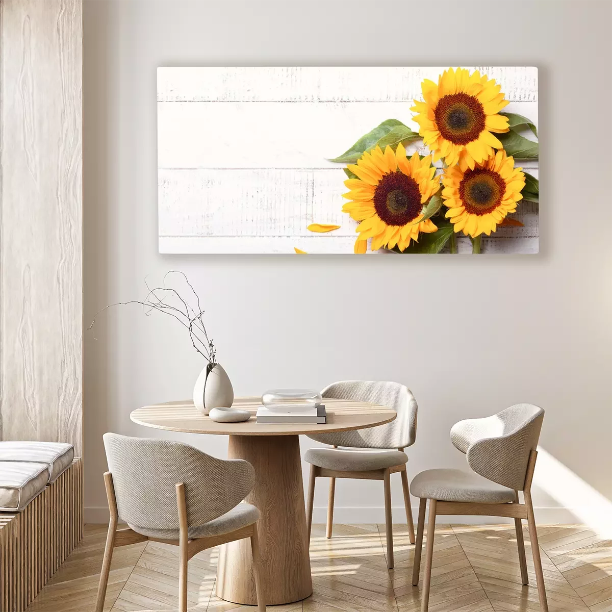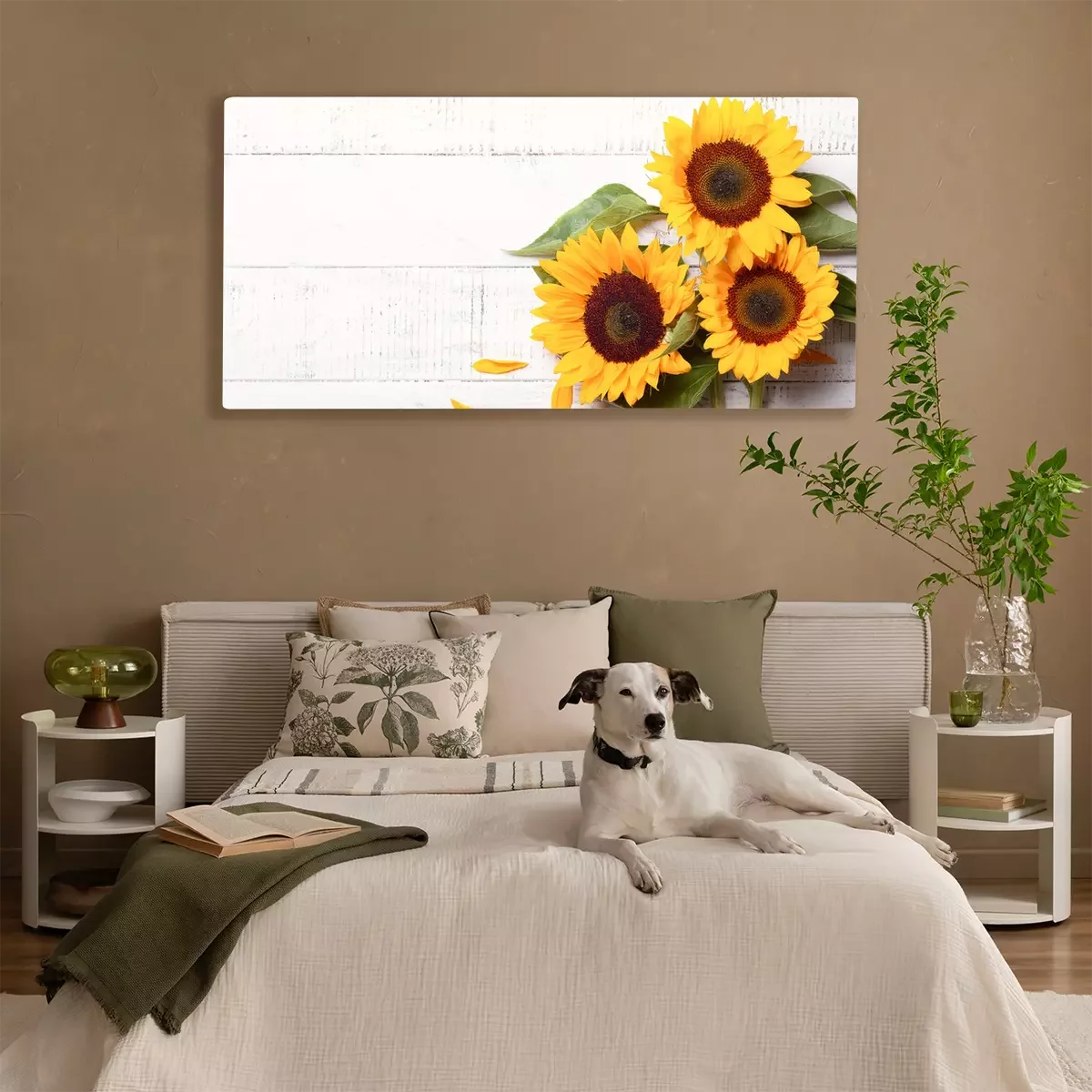 Canvas Zonnebloemen op een achtergrond van witte borden
