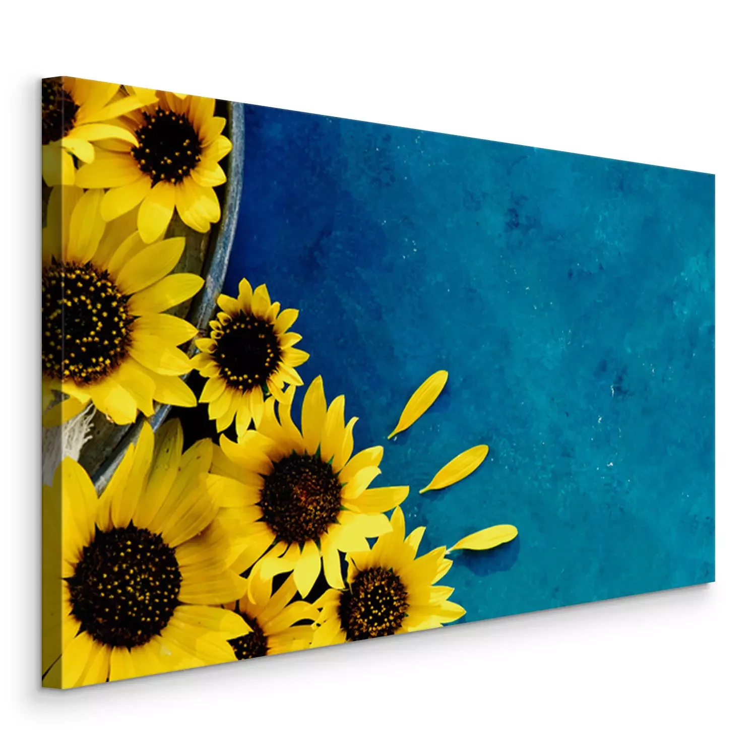 Canvas: Zonnebloemen op een marineblauwe achtergrond