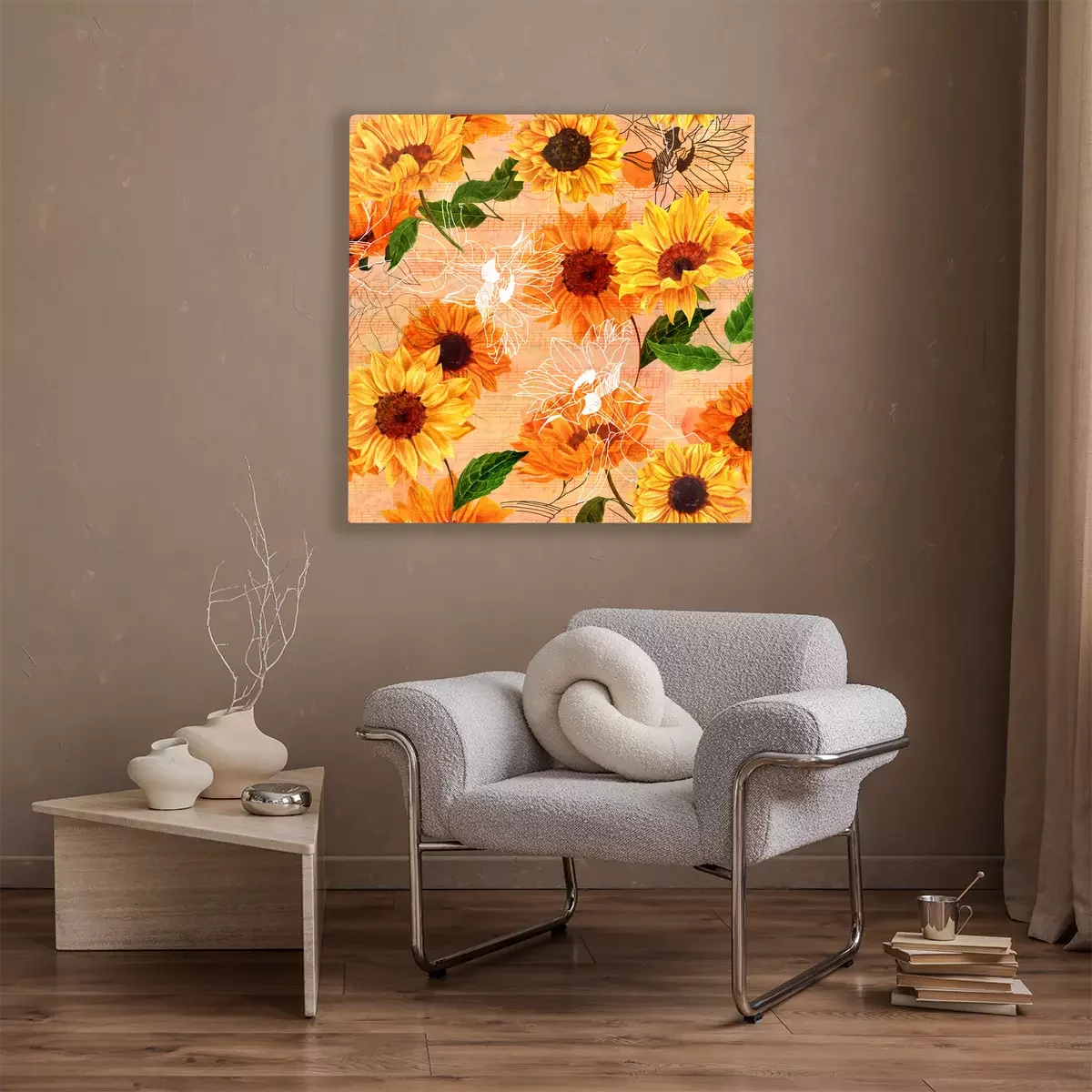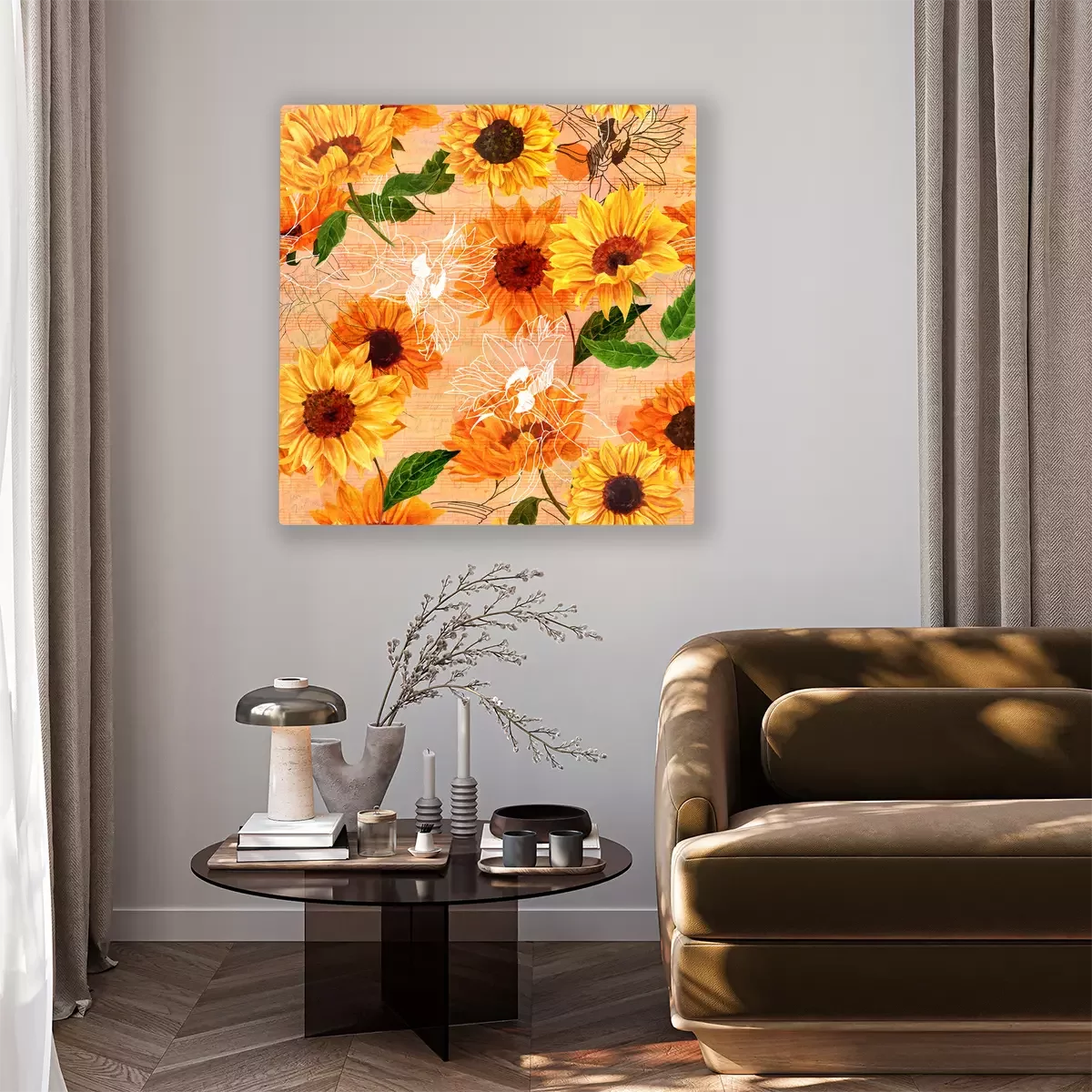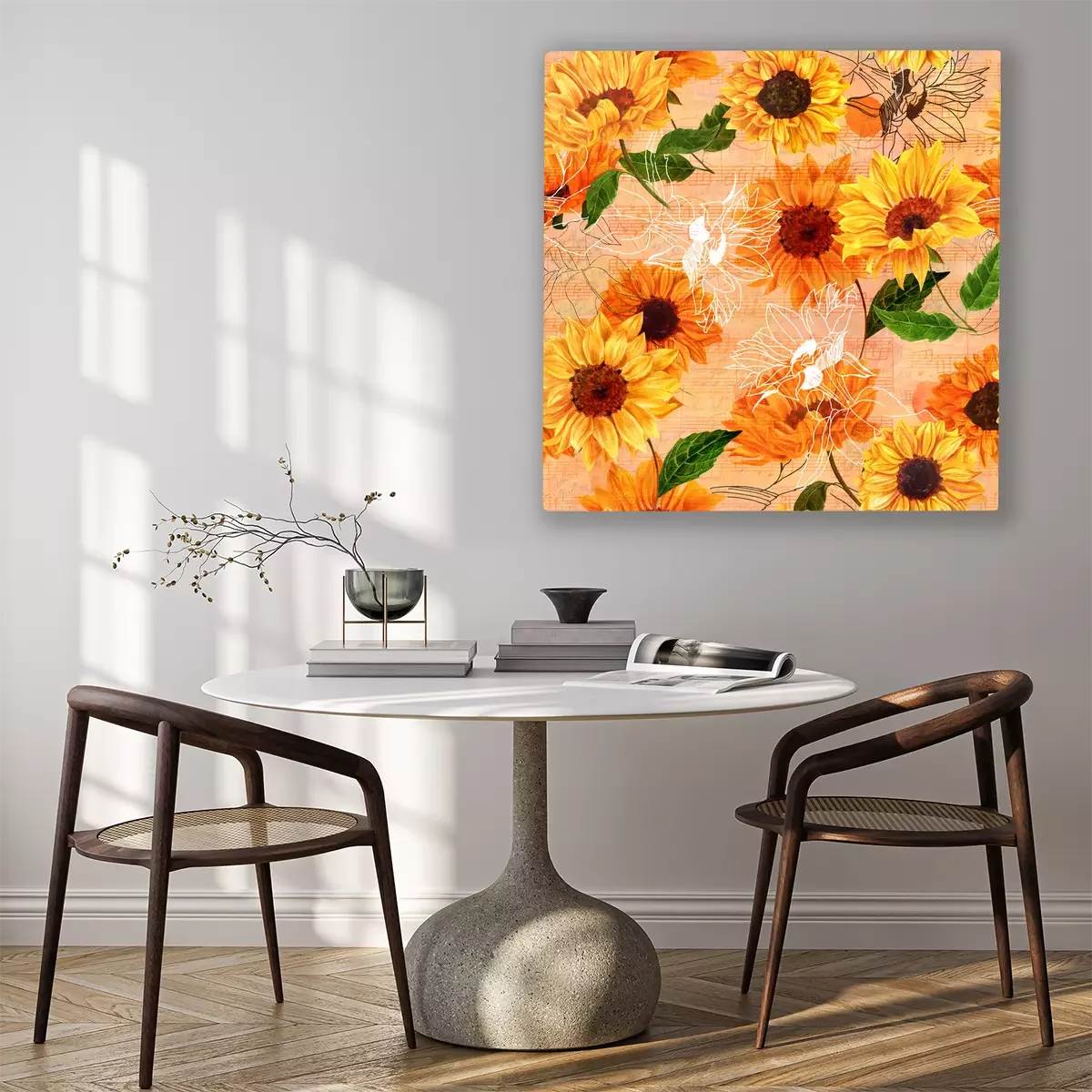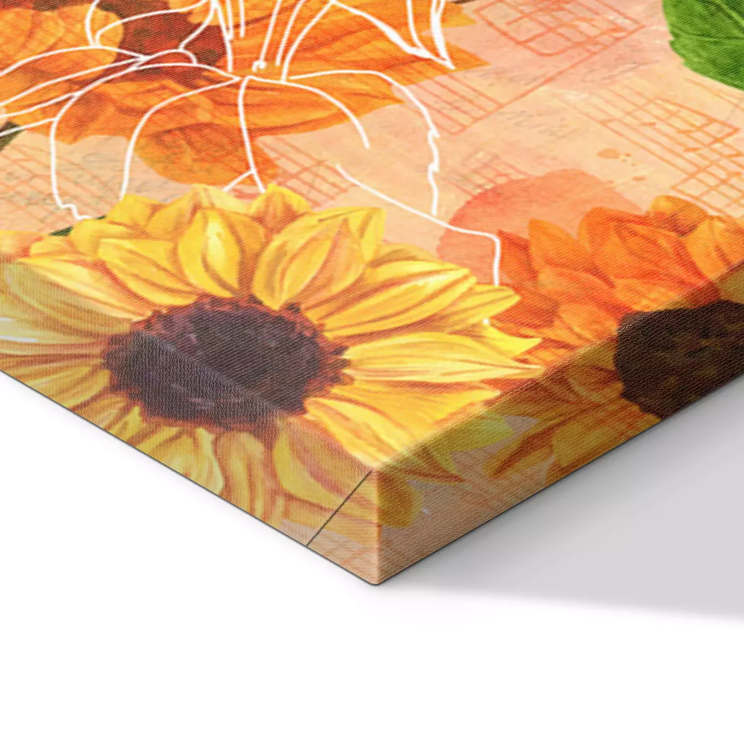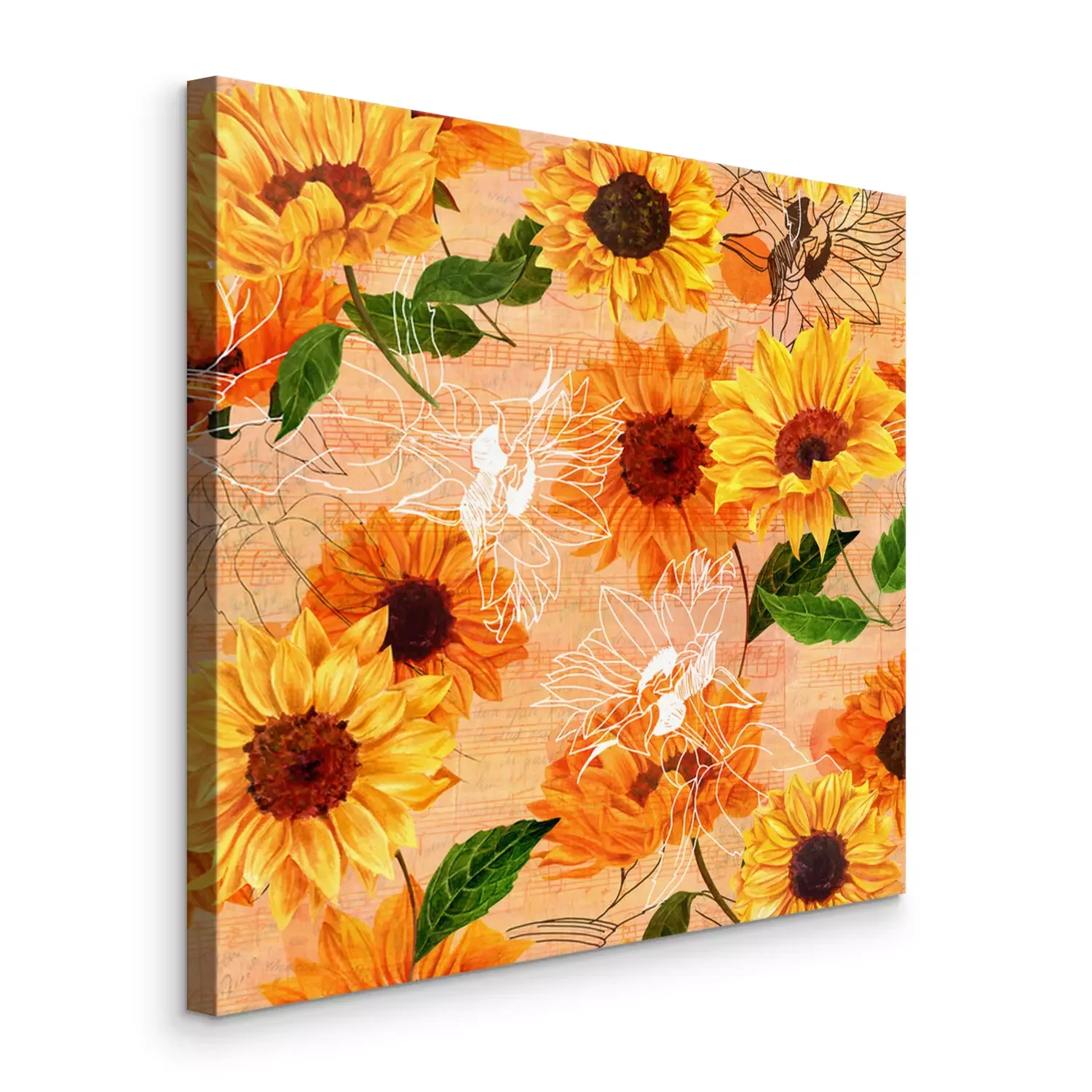 Canvas: Zonnebloemen op een personeelsachtergrond