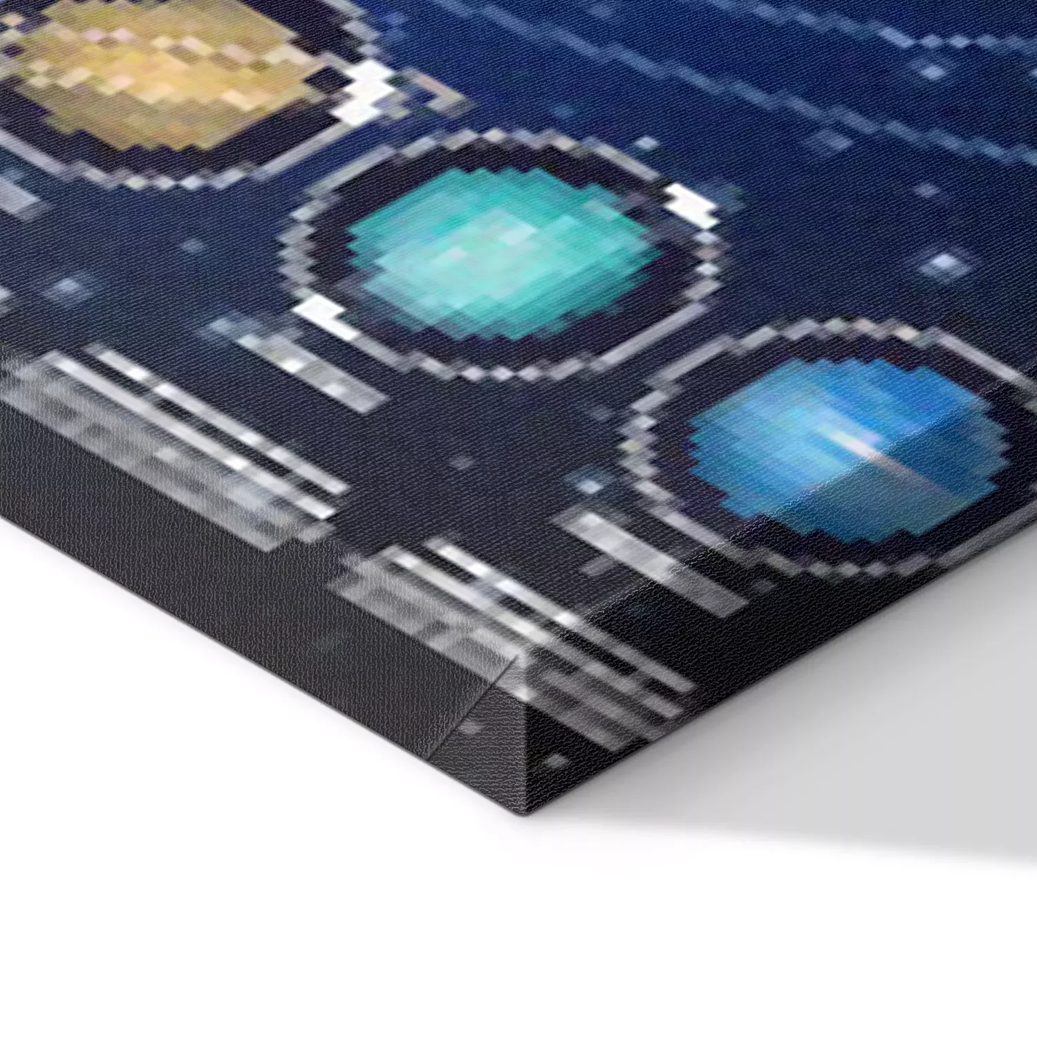 De print wordt aangebracht op hoogwaardig canvas dat op een schildersweefgetouw (spieraam) wordt gespannen. Omdat de print de zijranden bedekt, hoeft het ontwerp niet met een extra kader te worden omlijst. Wij raden ook composities aan die uit meerdere foto's bestaan en zo een coherente compositie vormen.