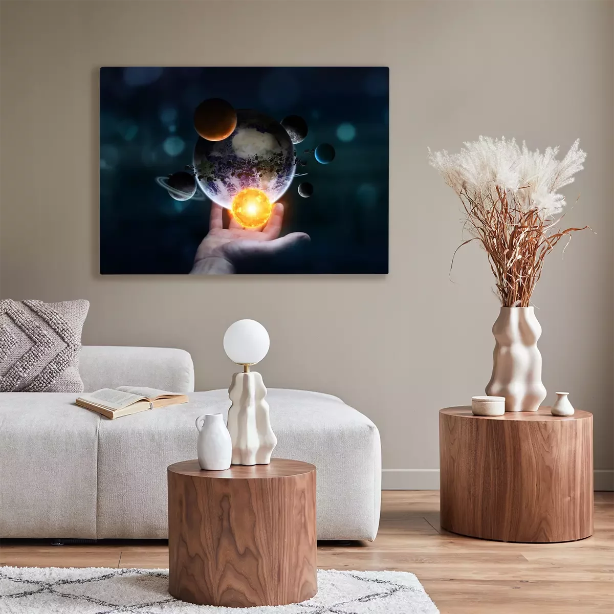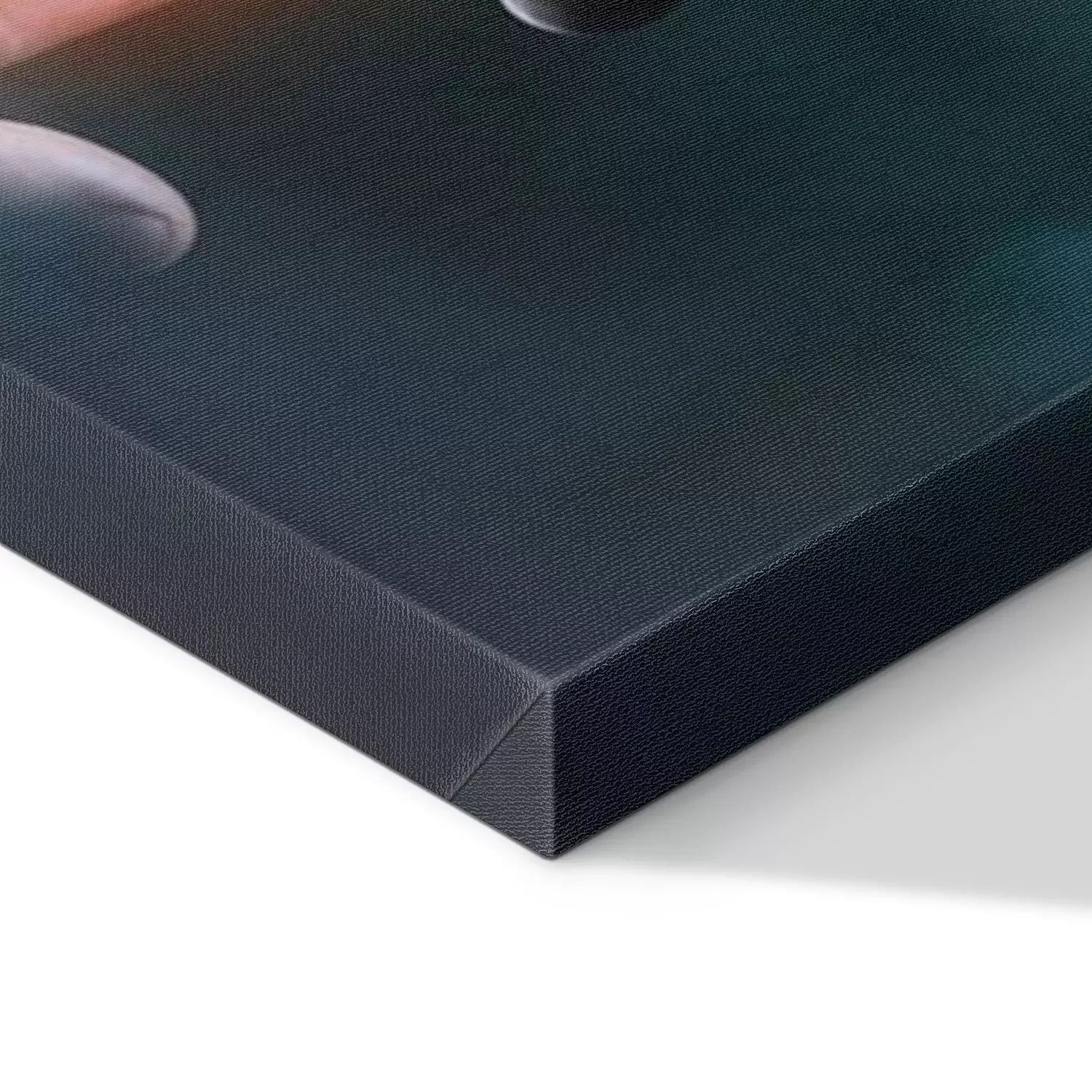 De print wordt aangebracht op hoogwaardig canvas dat op een schildersweefgetouw (spieraam) wordt gespannen. Omdat de print de zijranden bedekt, hoeft het ontwerp niet met een extra kader te worden omlijst. Wij raden ook composities aan die uit meerdere foto's bestaan en zo een coherente compositie vormen.