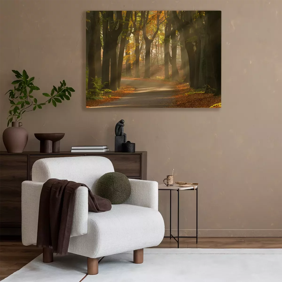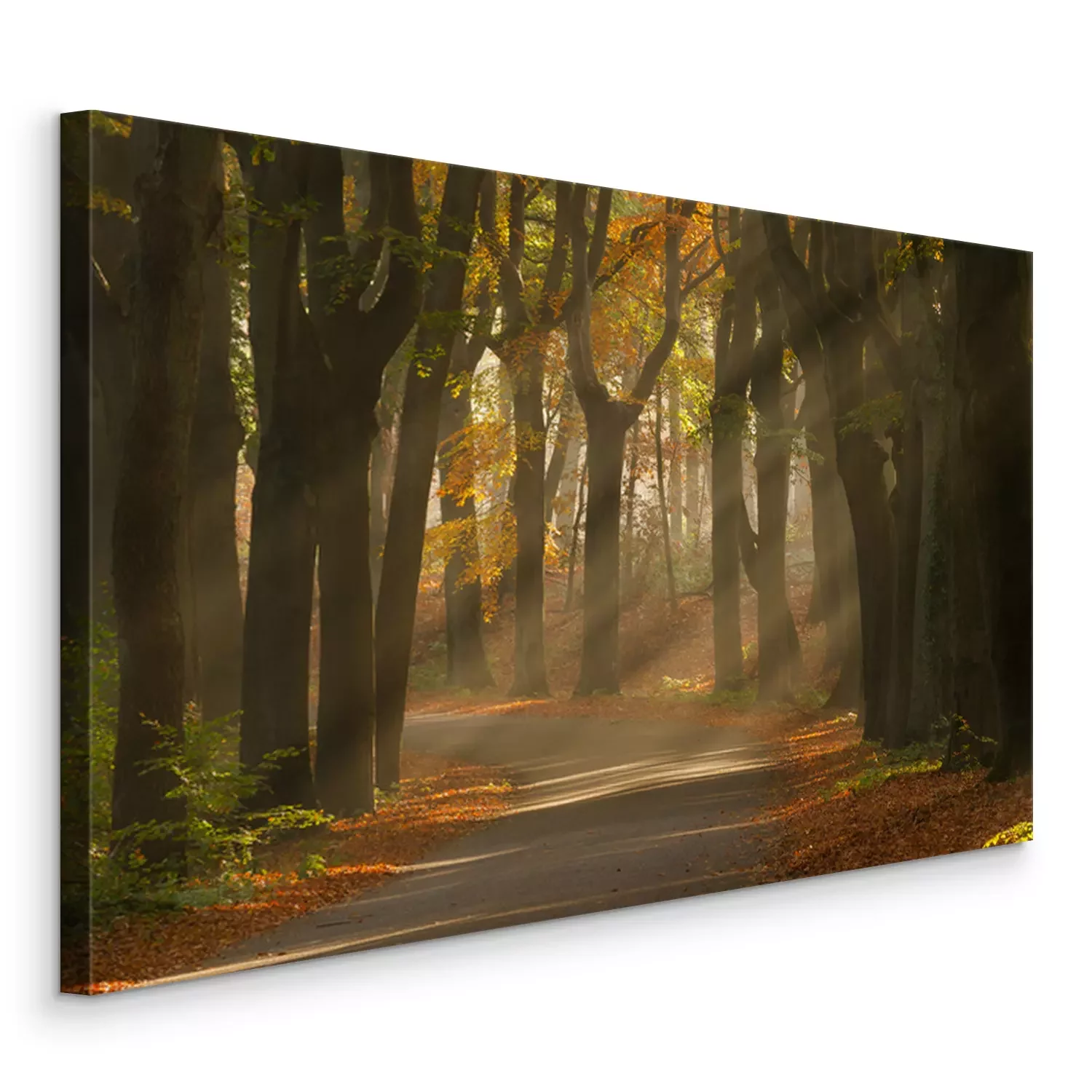 Canvas: Zonnestralen en mooie herfst kleuren in het bos.