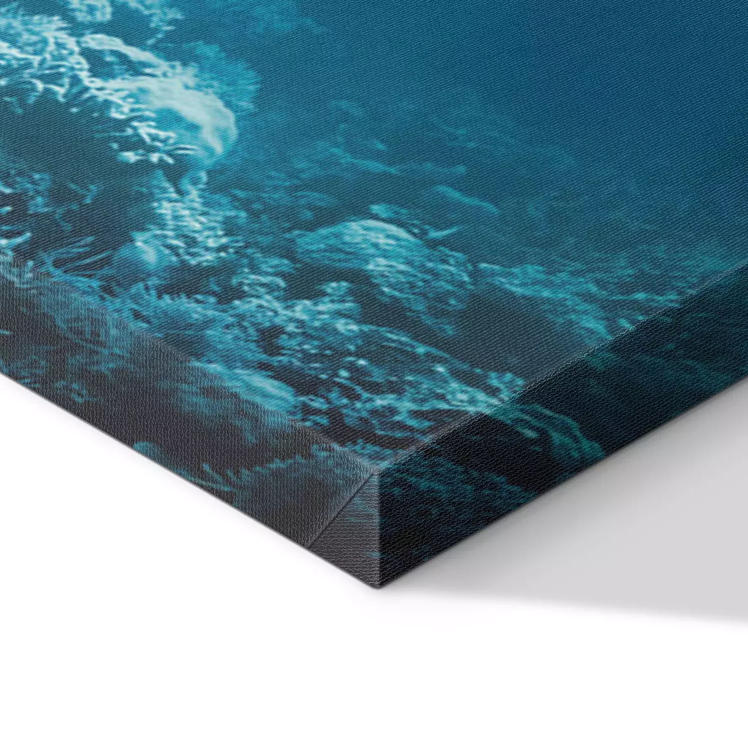 De print wordt aangebracht op hoogwaardig canvas dat op een schildersweefgetouw (spieraam) wordt gespannen. Omdat de print de zijranden bedekt, hoeft het ontwerp niet met een extra kader te worden omlijst. Wij raden ook composities aan die uit meerdere foto's bestaan en zo een coherente compositie vormen.