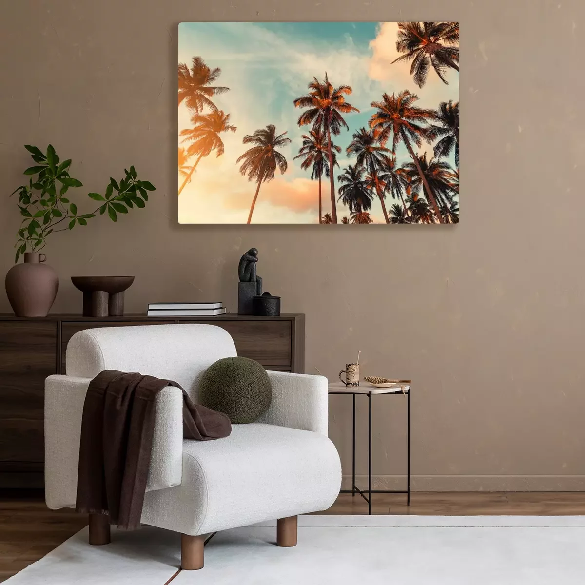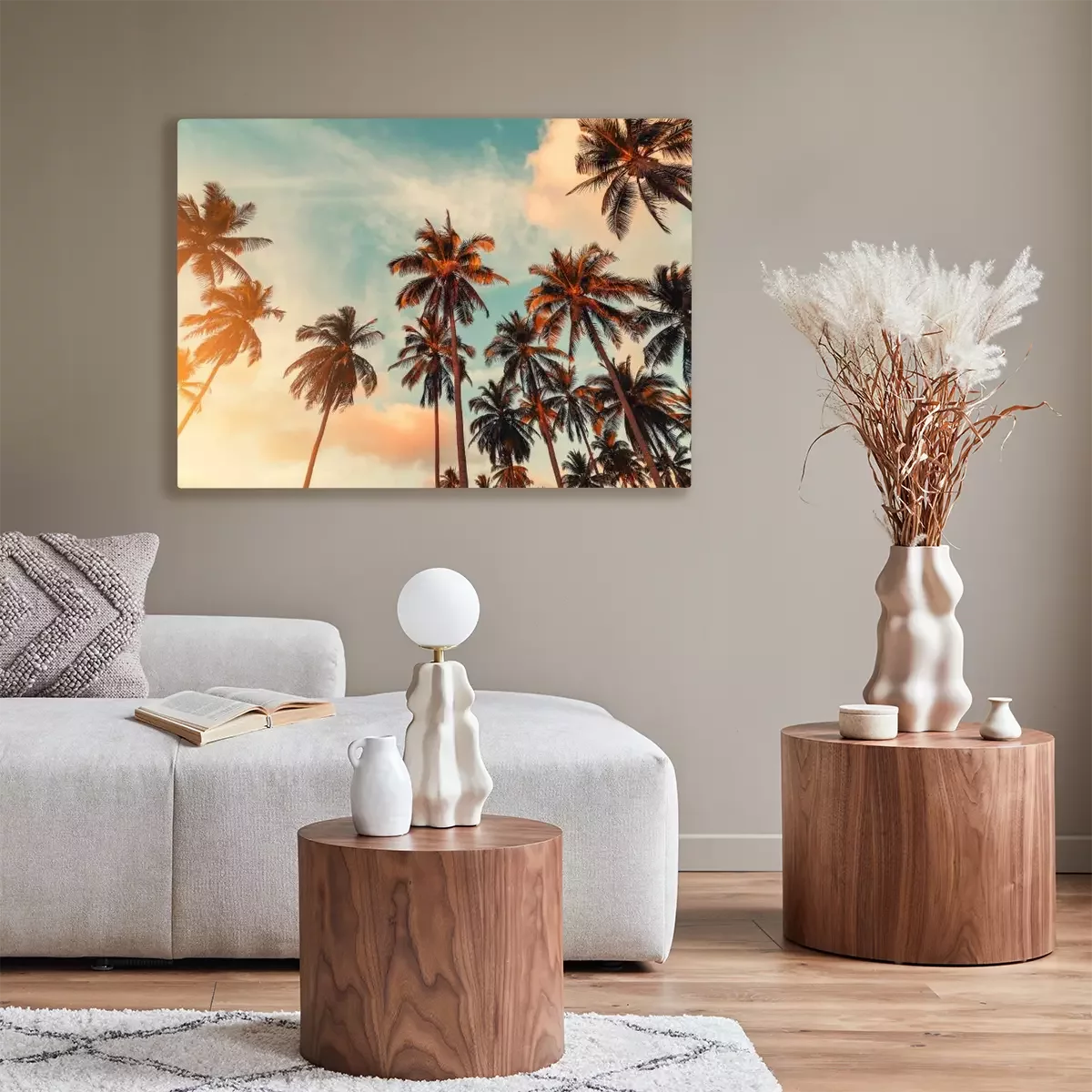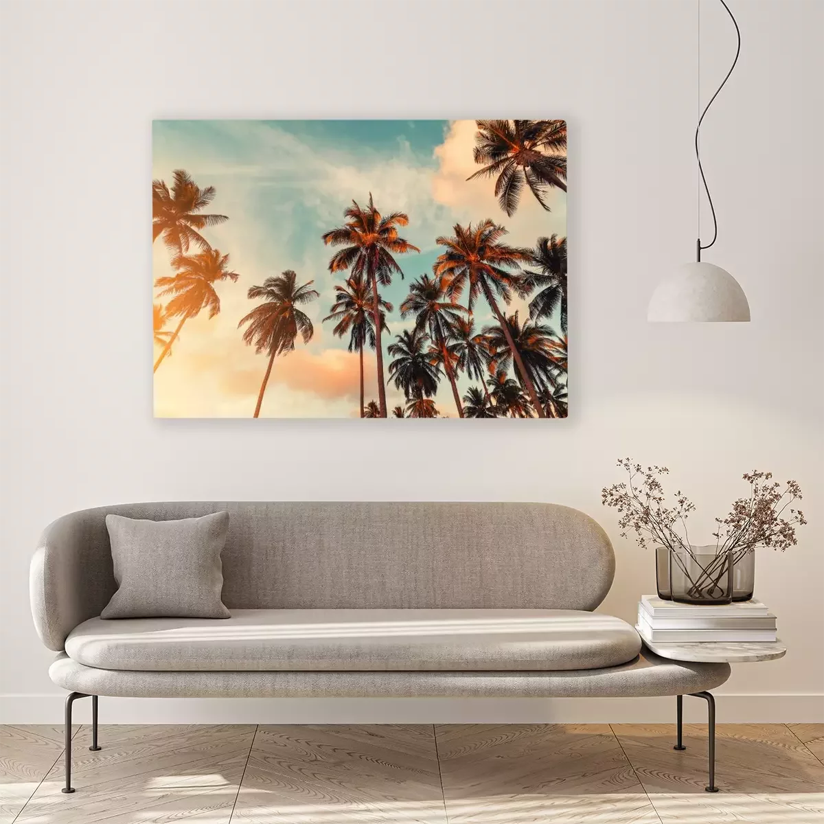 Canvas: Zonnestralen over kokospalmen
