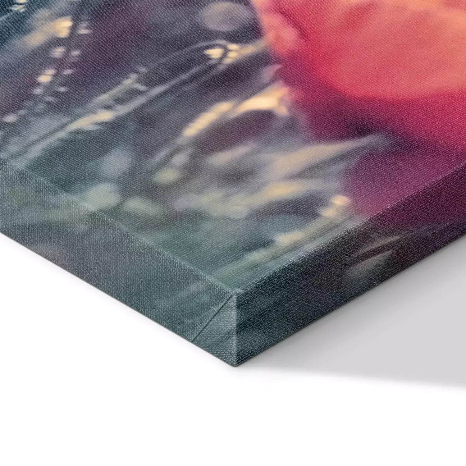 De print wordt aangebracht op hoogwaardig canvas dat op een schildersweefgetouw (spieraam) wordt gespannen. Omdat de print de zijranden bedekt, hoeft het ontwerp niet met een extra kader te worden omlijst. Wij raden ook composities aan die uit meerdere foto's bestaan en zo een coherente compositie vormen.