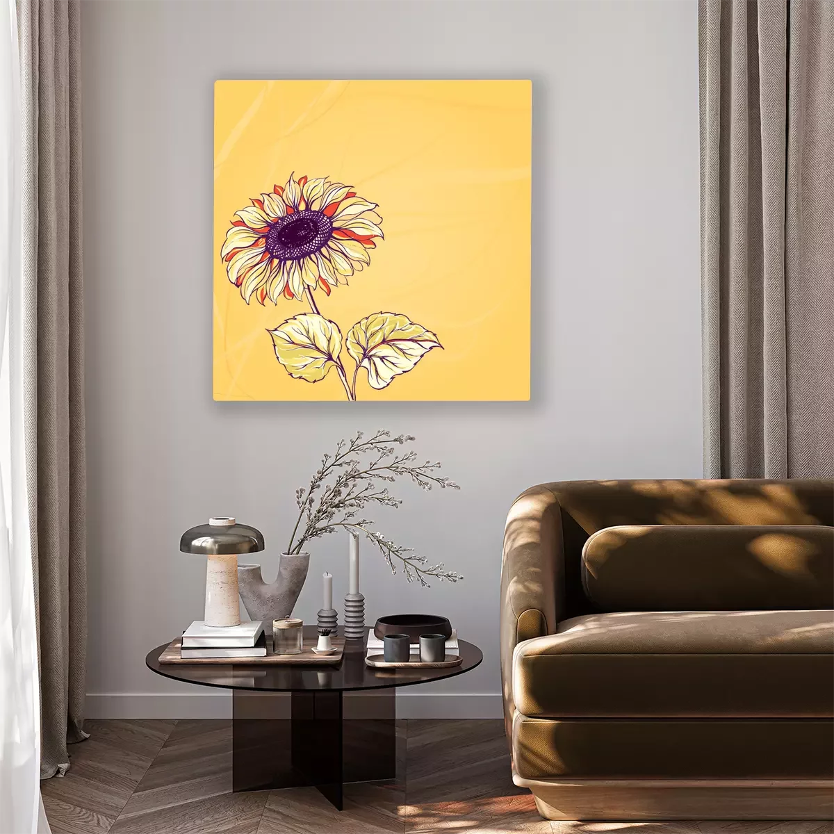 Canvas: Zonnige illustratie op een oranje achtergrond