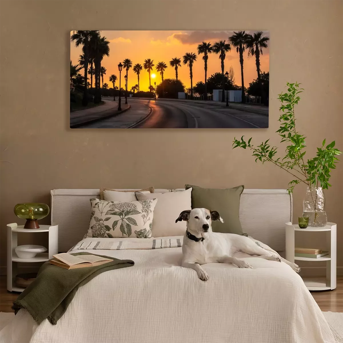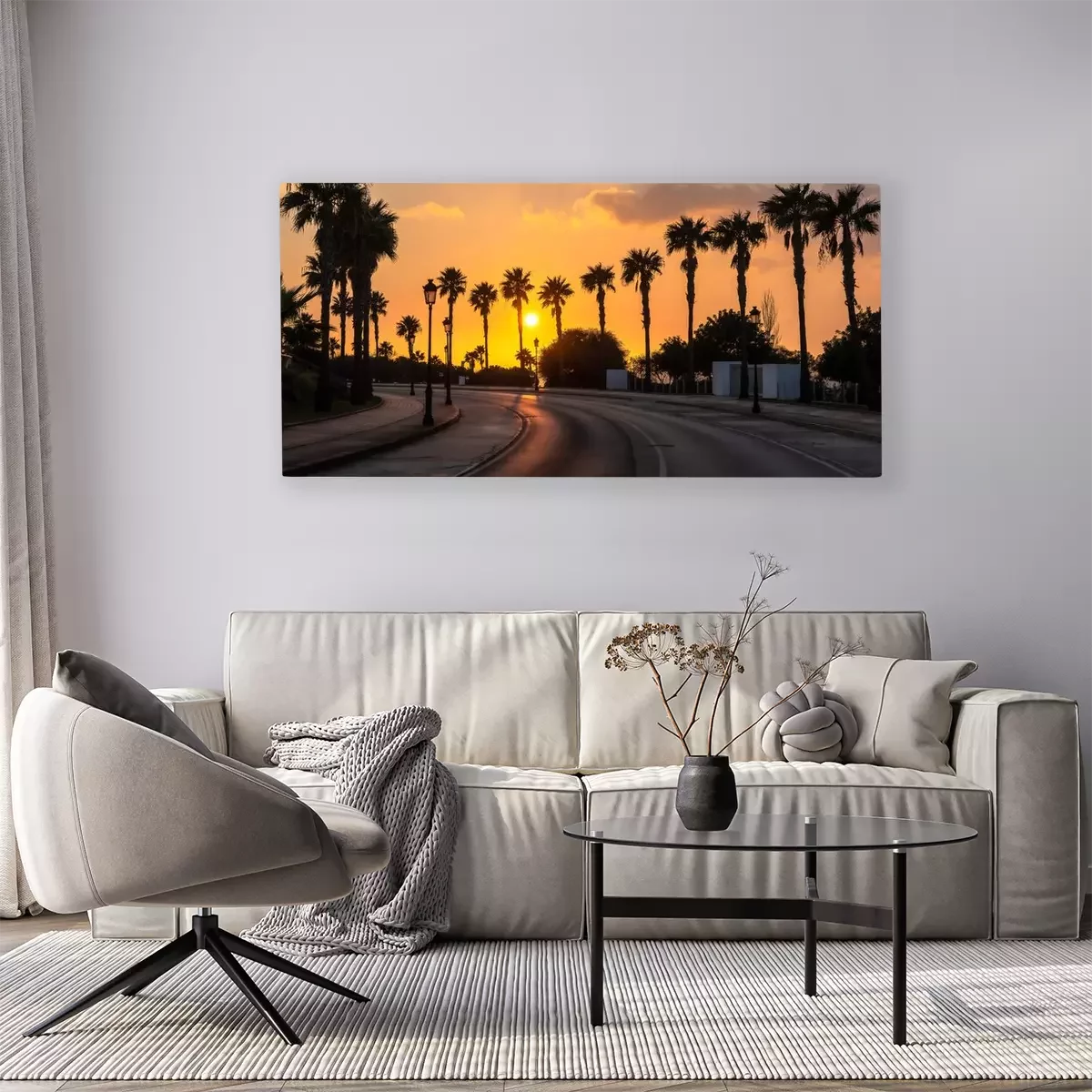 Canvas: Zonnige straat tussen de palmbomen