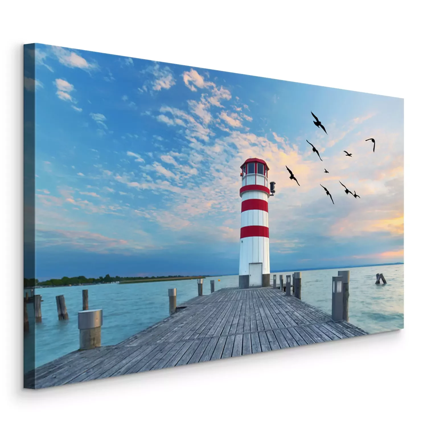 Canvas: Zonsondergang bij de vuurtoren op het meer