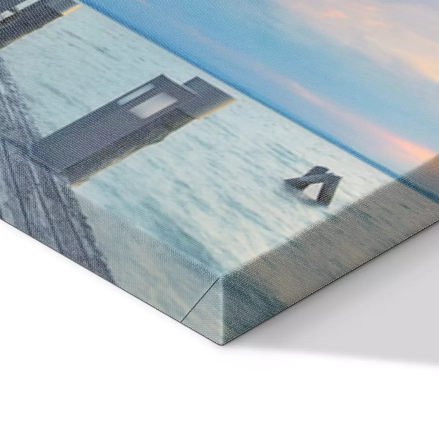 De print wordt aangebracht op hoogwaardig canvas dat op een schildersweefgetouw (spieraam) wordt gespannen. Omdat de print de zijranden bedekt, hoeft het ontwerp niet met een extra kader te worden omlijst. Wij raden ook composities aan die uit meerdere foto's bestaan en zo een coherente compositie vormen.