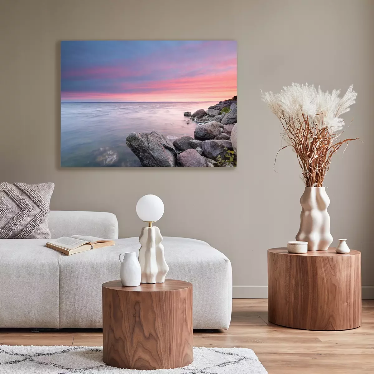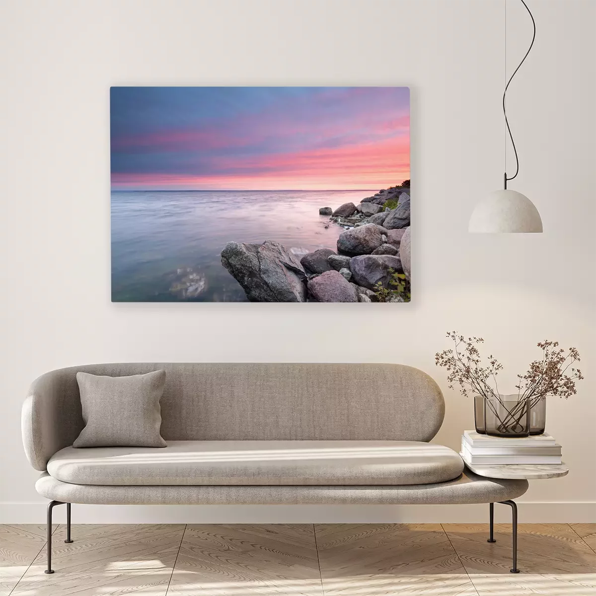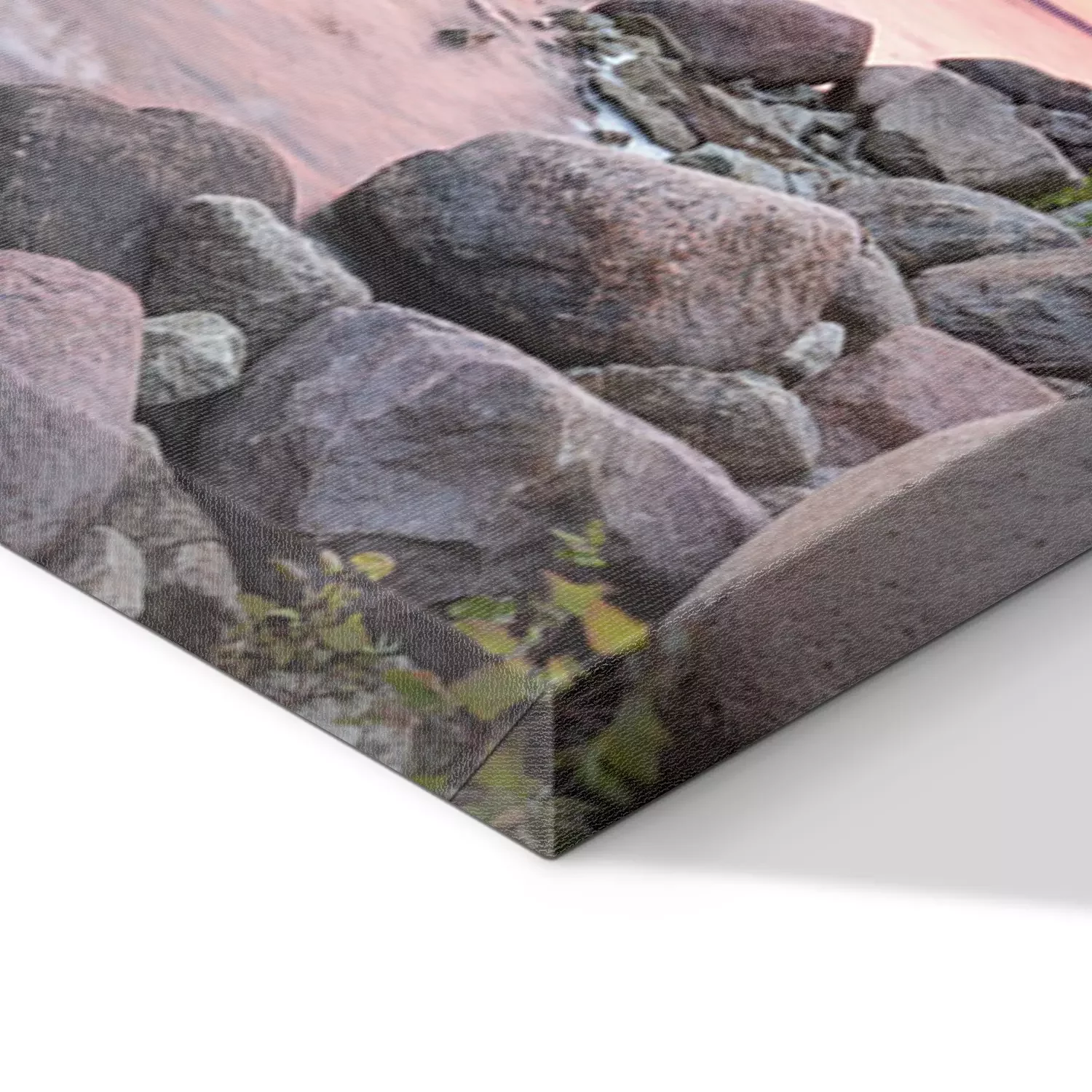De print wordt aangebracht op hoogwaardig canvas dat op een schildersweefgetouw (spieraam) wordt gespannen. Omdat de print de zijranden bedekt, hoeft het ontwerp niet met een extra kader te worden omlijst. Wij raden ook composities aan die uit meerdere foto's bestaan en zo een coherente compositie vormen.
