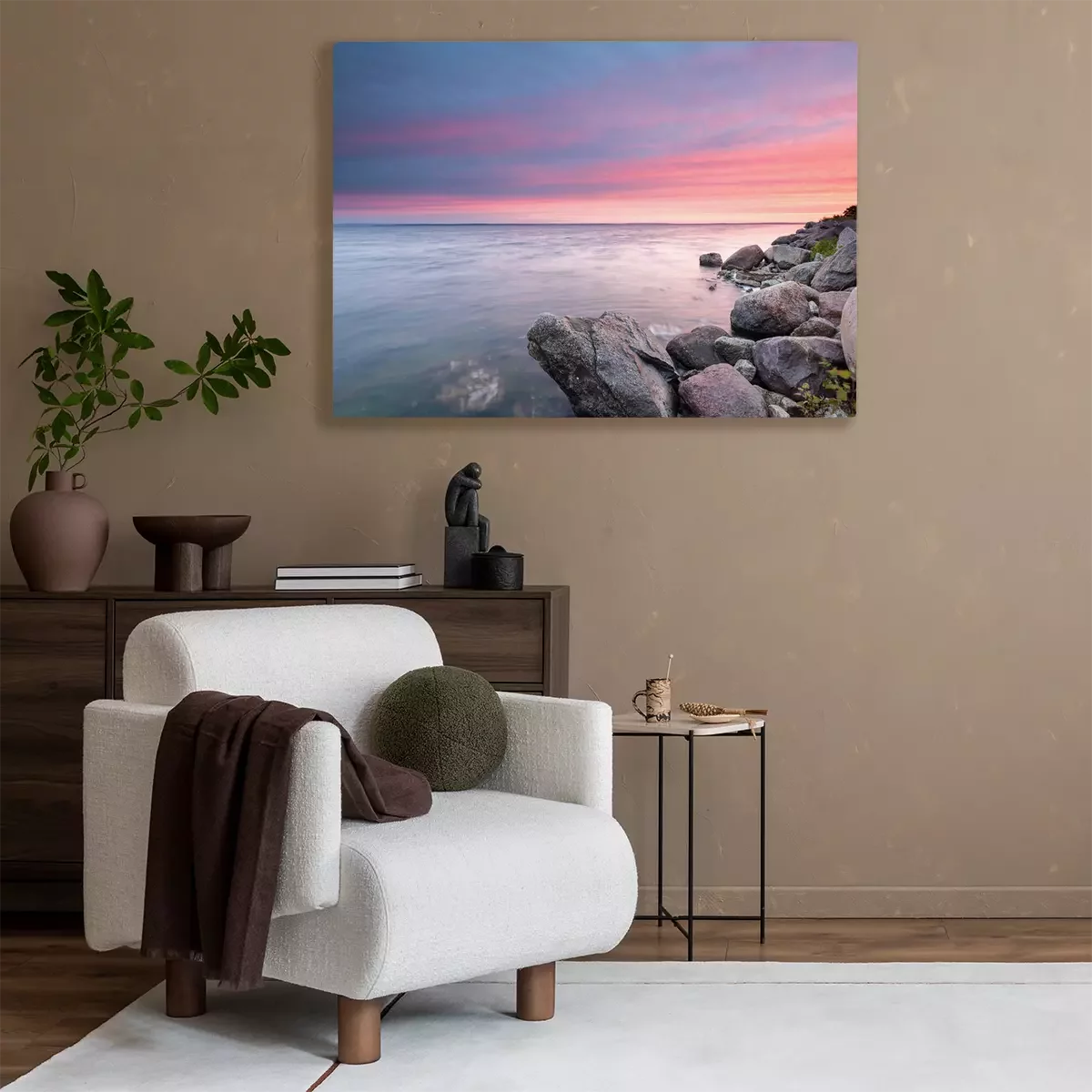 Canvas: Zonsondergang boven de zee en de rotsachtige kust