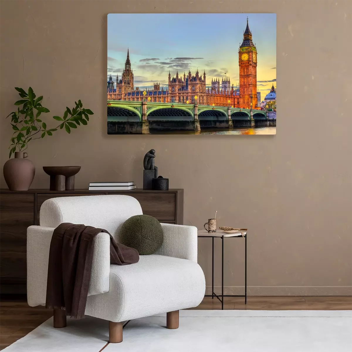 Canvas: Zonsondergang boven het Palace of Westminster en de Big Ben