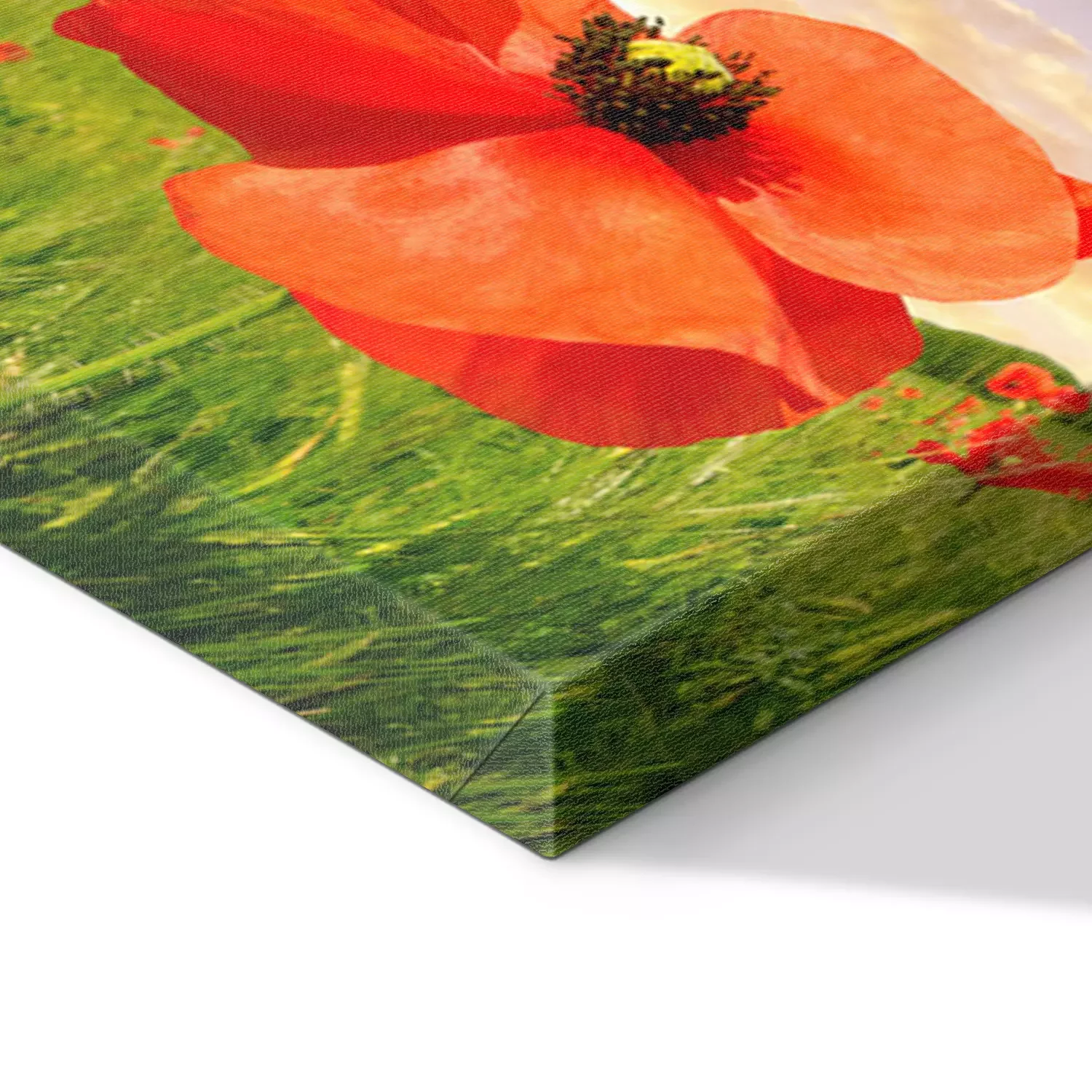 De print wordt aangebracht op hoogwaardig canvas dat op een schildersweefgetouw (spieraam) wordt gespannen. Omdat de print de zijranden bedekt, hoeft het ontwerp niet met een extra kader te worden omlijst. Wij raden ook composities aan die uit meerdere foto's bestaan en zo een coherente compositie vormen.