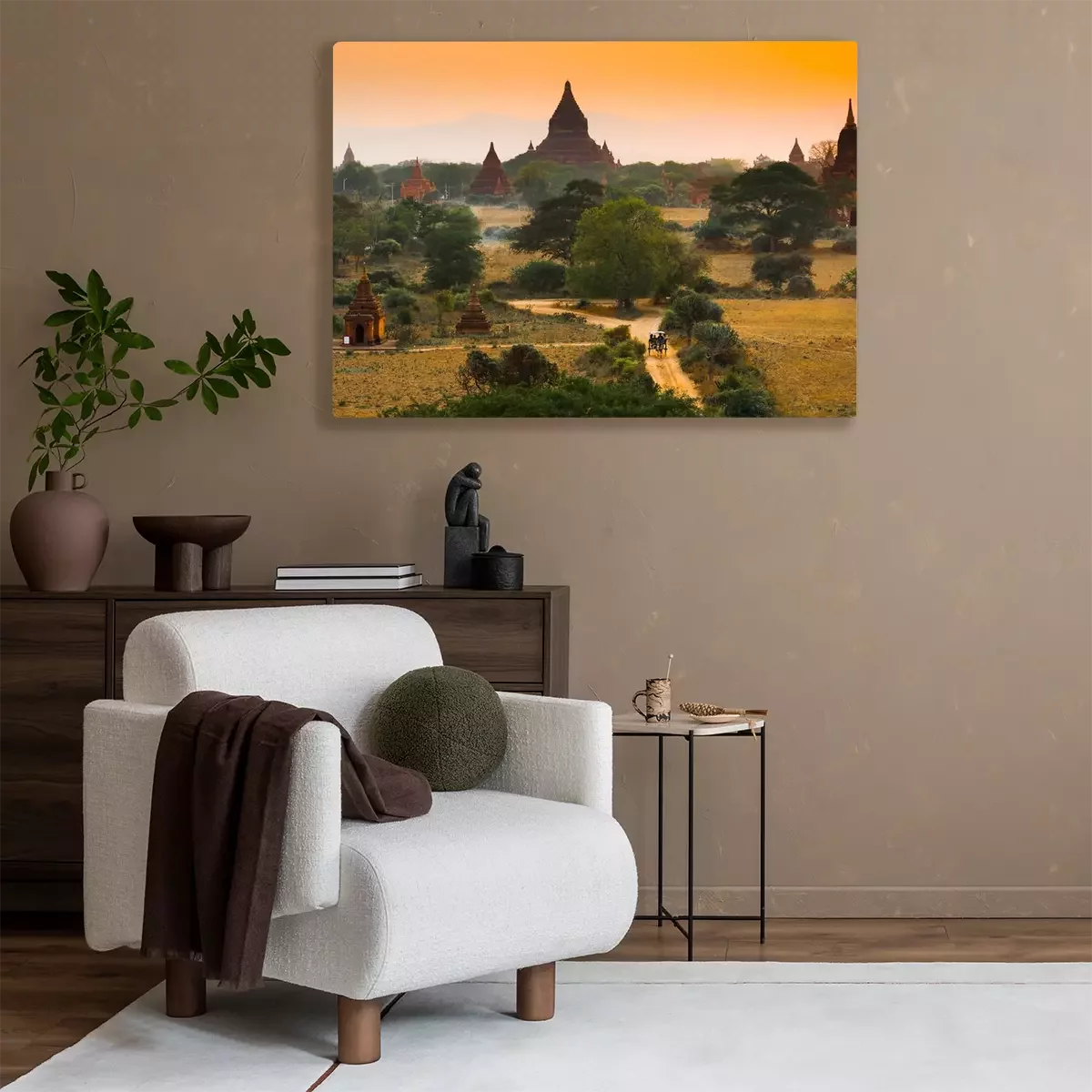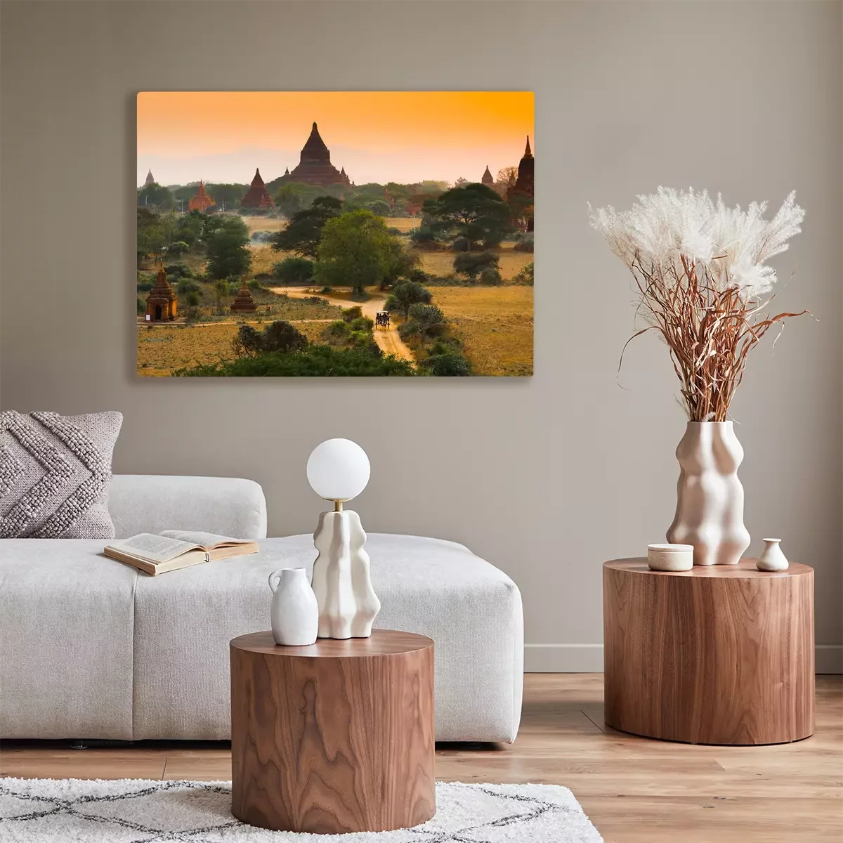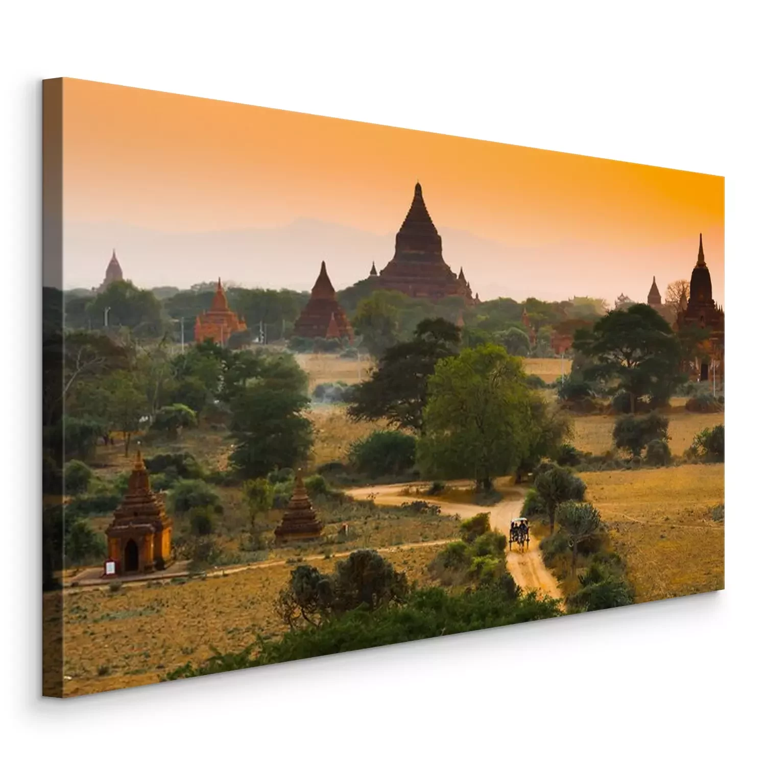 Canvas: Zonsondergang in Bagan, Myanmar. Bagan is oude stad met duizenden oude tempels in Myanmar.
