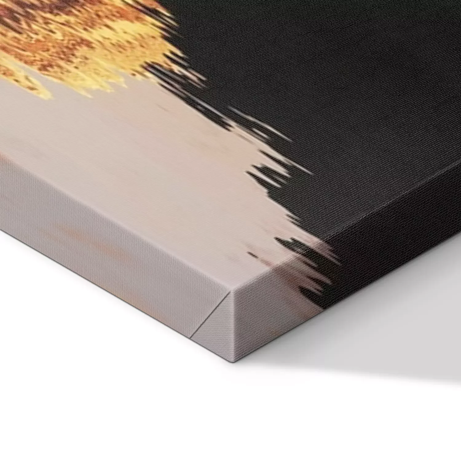 De print wordt aangebracht op hoogwaardig canvas dat op een schildersweefgetouw (spieraam) wordt gespannen. Omdat de print de zijranden bedekt, hoeft het ontwerp niet met een extra kader te worden omlijst. Wij raden ook composities aan die uit meerdere foto's bestaan en zo een coherente compositie vormen.