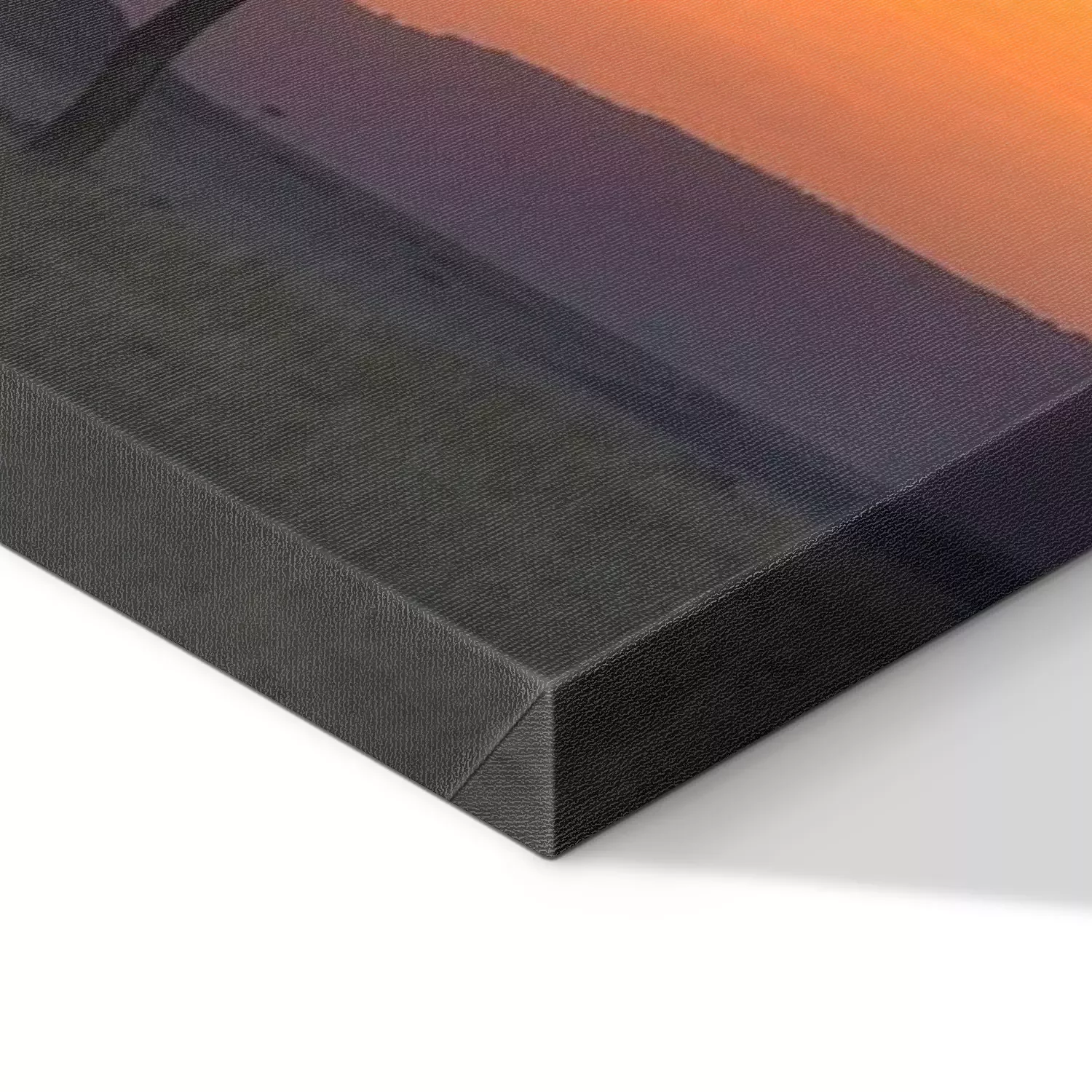 De print wordt aangebracht op hoogwaardig canvas dat op een schildersweefgetouw (spieraam) wordt gespannen. Omdat de print de zijranden bedekt, hoeft het ontwerp niet met een extra kader te worden omlijst. Wij raden ook composities aan die uit meerdere foto's bestaan en zo een coherente compositie vormen.