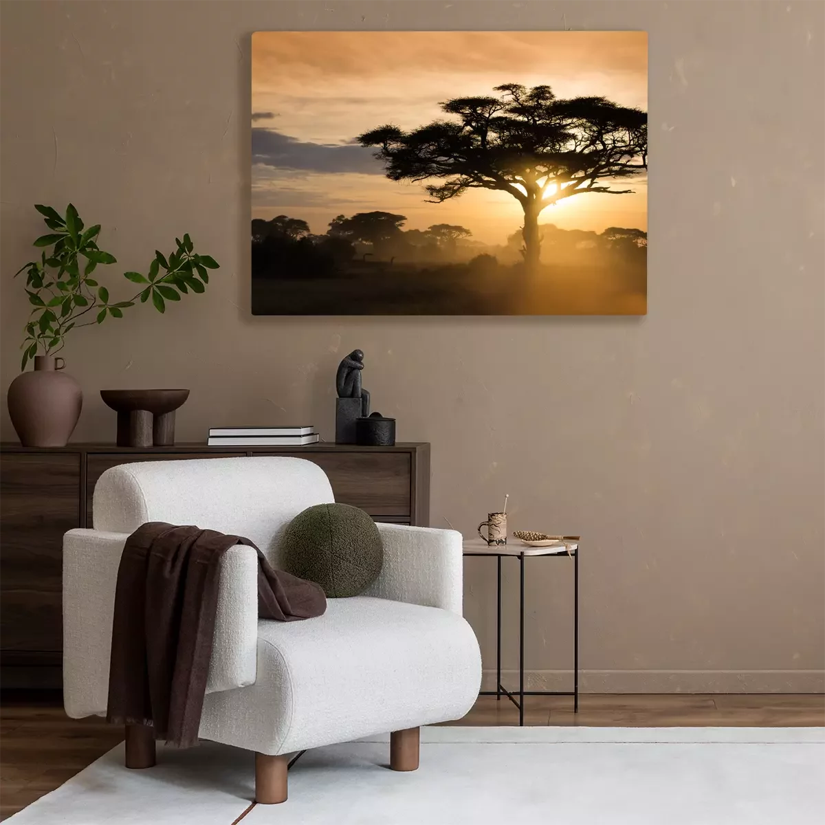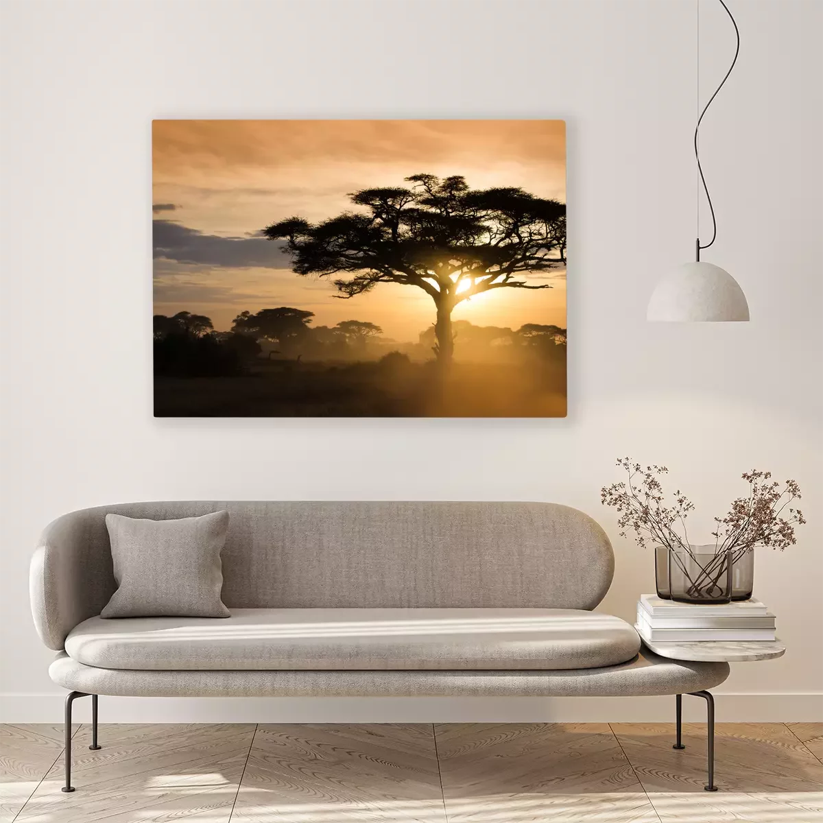 Canvas: Zonsondergang op de Afrikaanse savanne