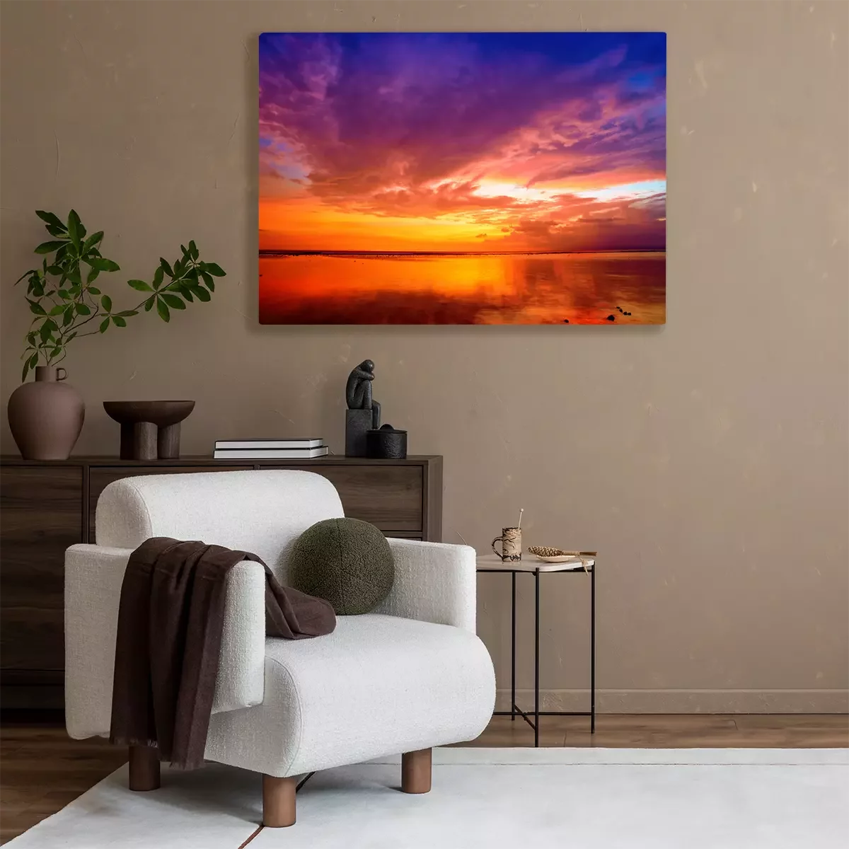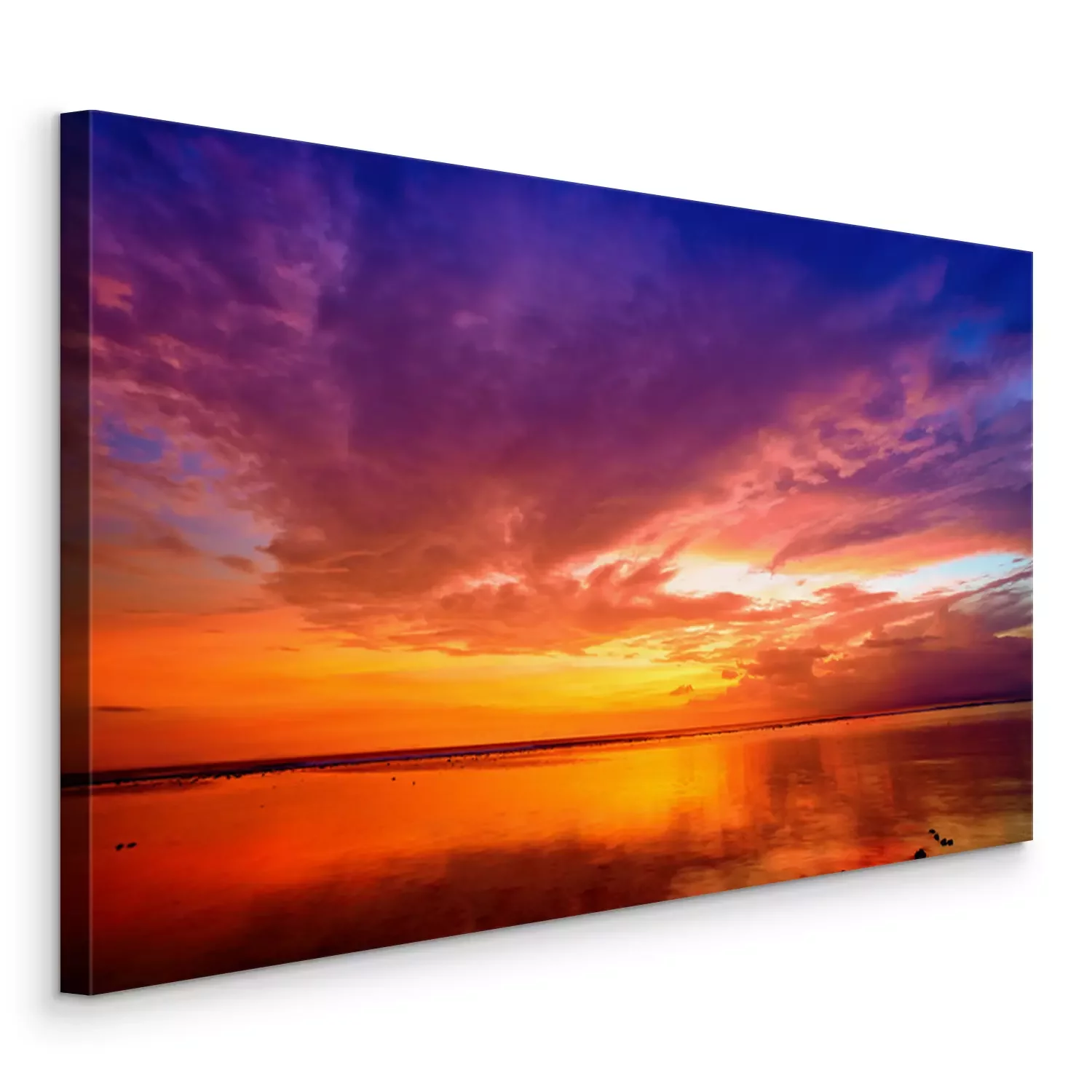 Canvas: Zonsondergang over Bali gezien vanaf Gili eiland, Indonesië