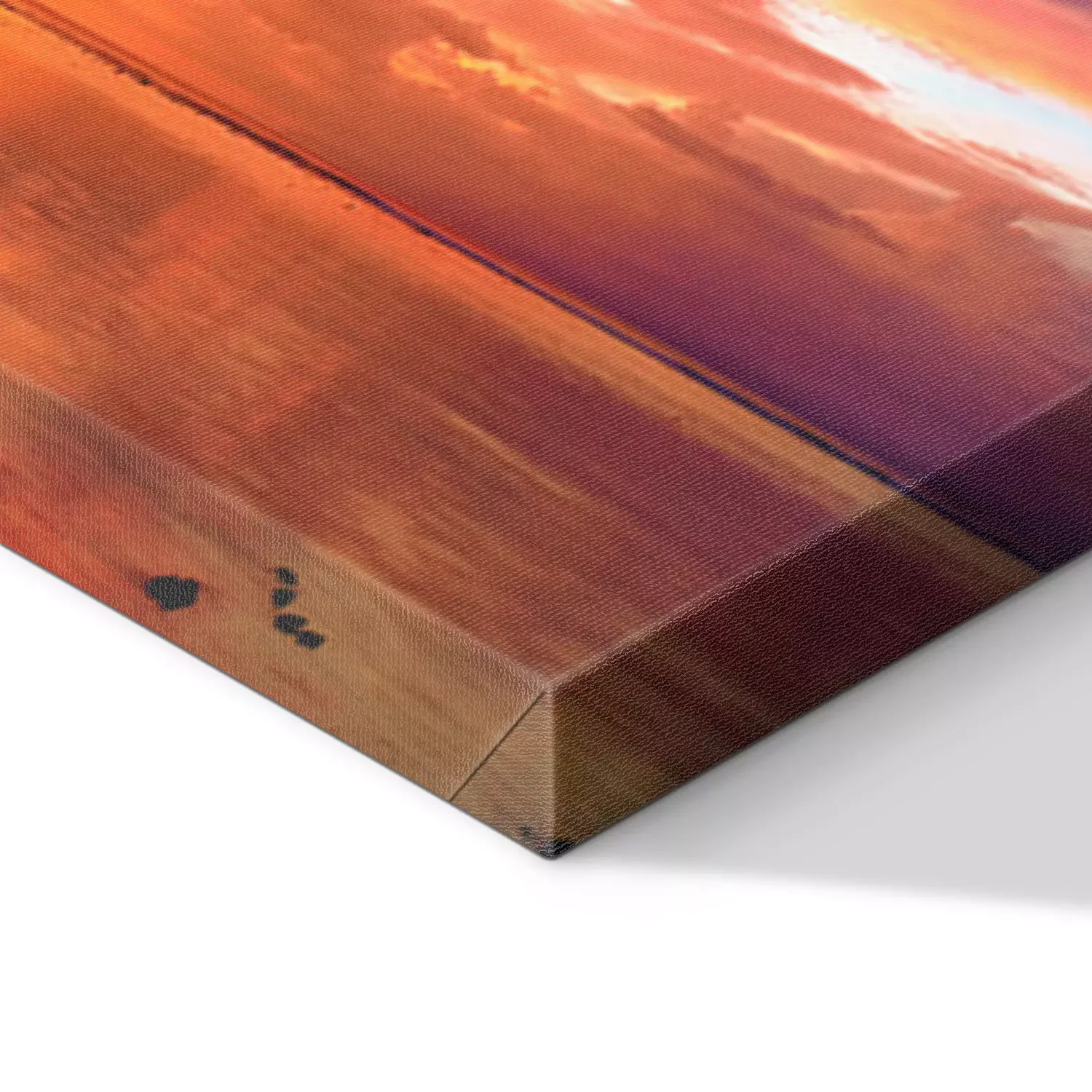 De print wordt aangebracht op hoogwaardig canvas dat op een schildersweefgetouw (spieraam) wordt gespannen. Omdat de print de zijranden bedekt, hoeft het ontwerp niet met een extra kader te worden omlijst. Wij raden ook composities aan die uit meerdere foto's bestaan en zo een coherente compositie vormen.