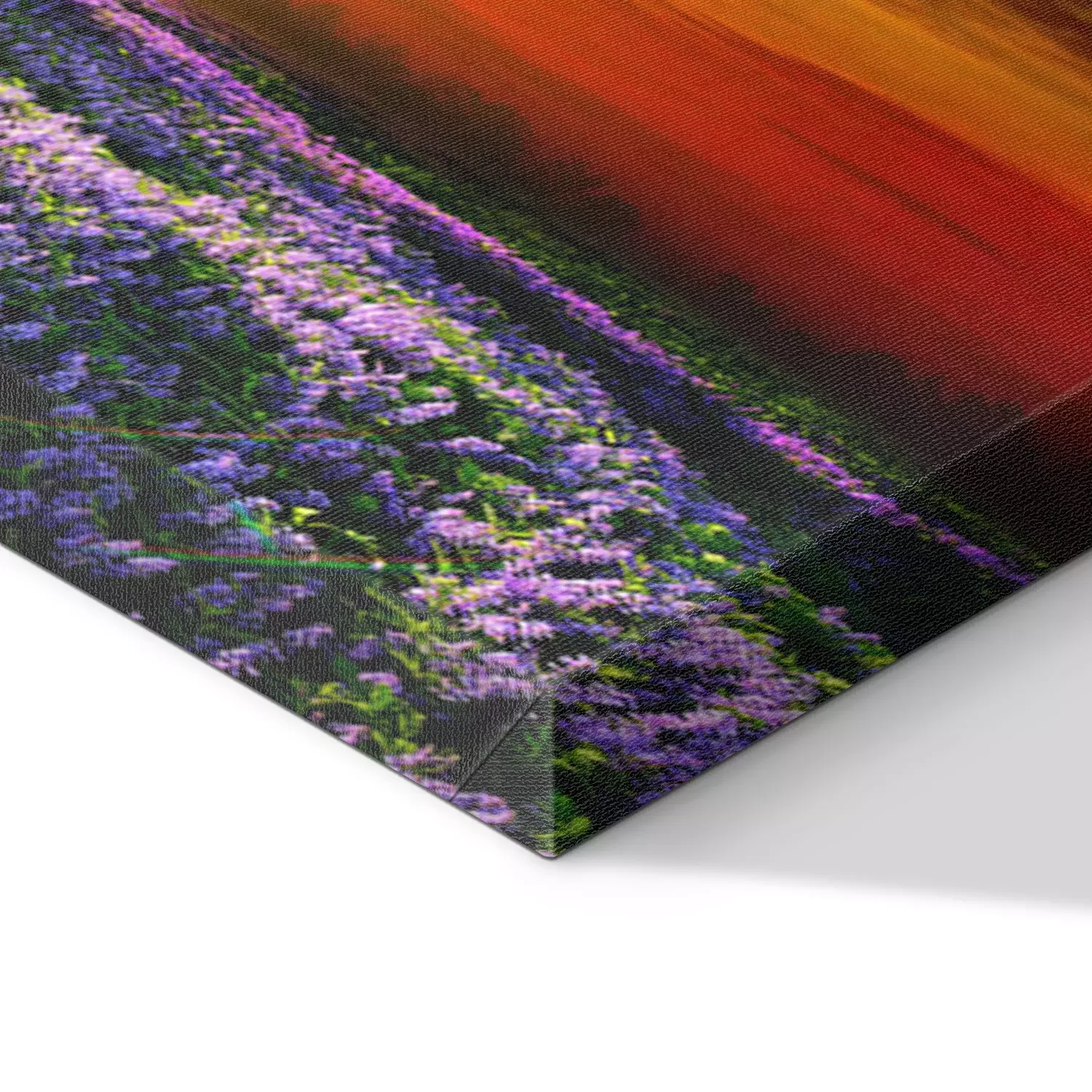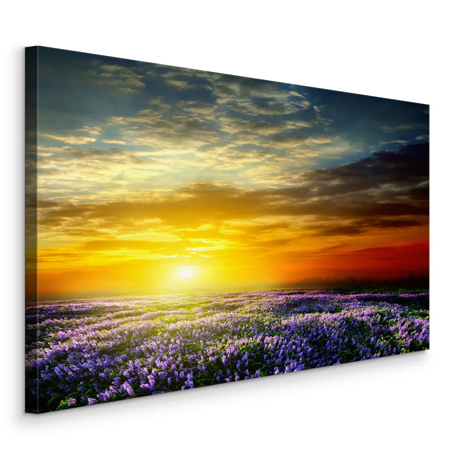 Canvas: Zonsondergang over een zomer Lavendel veld