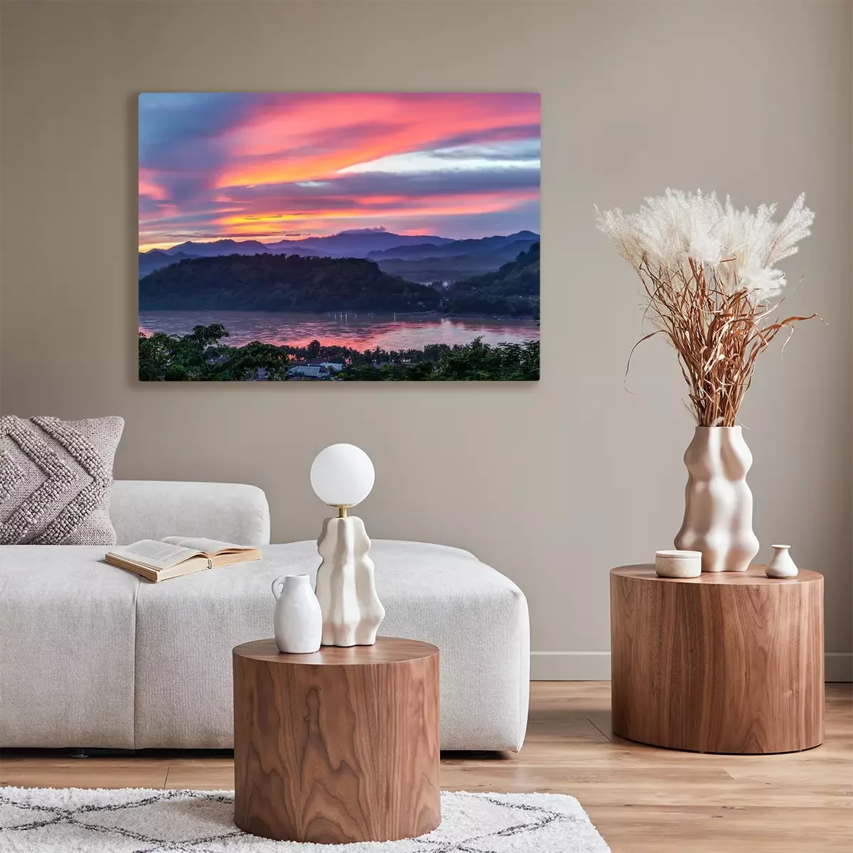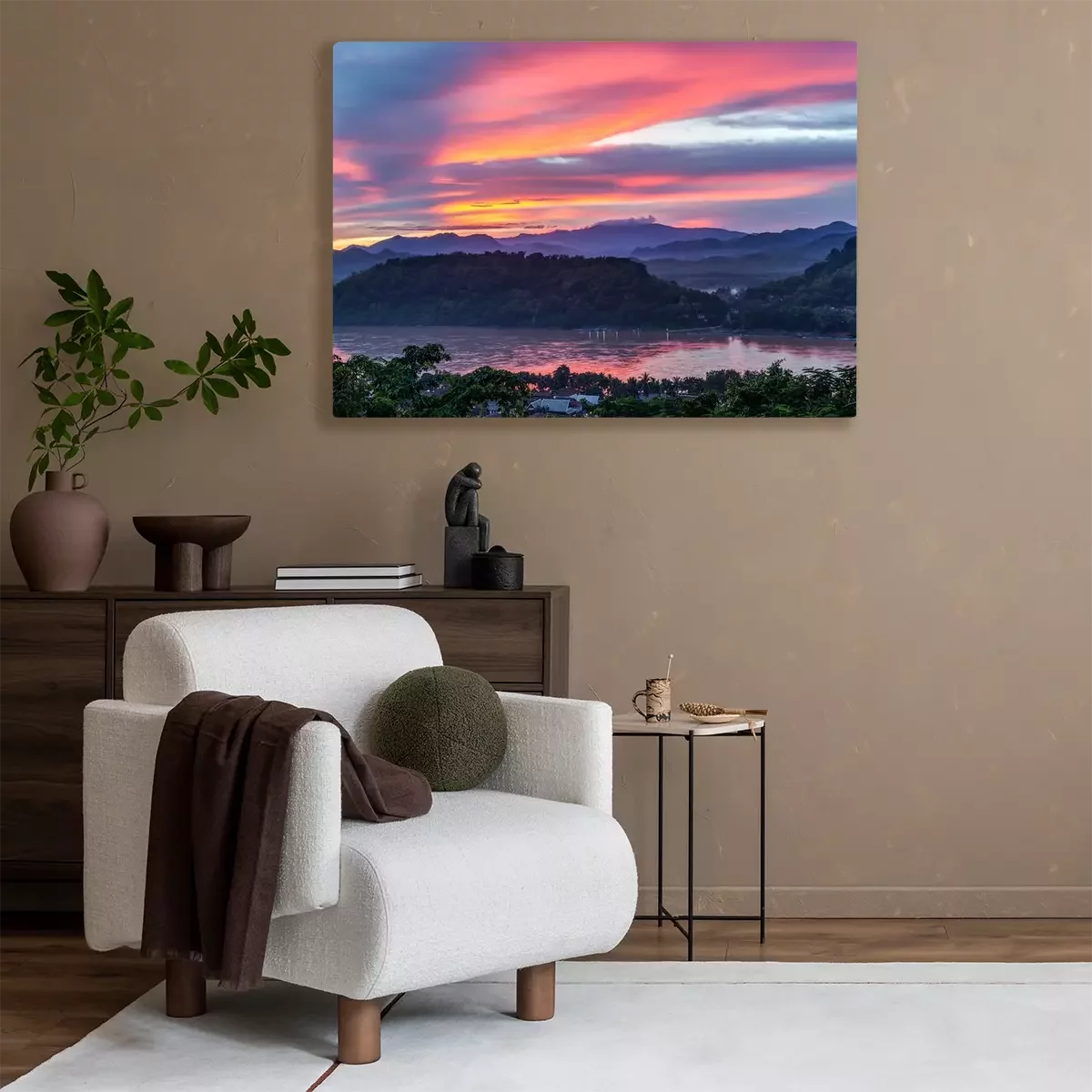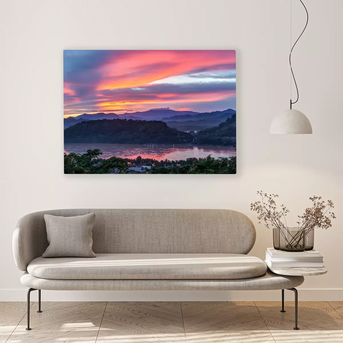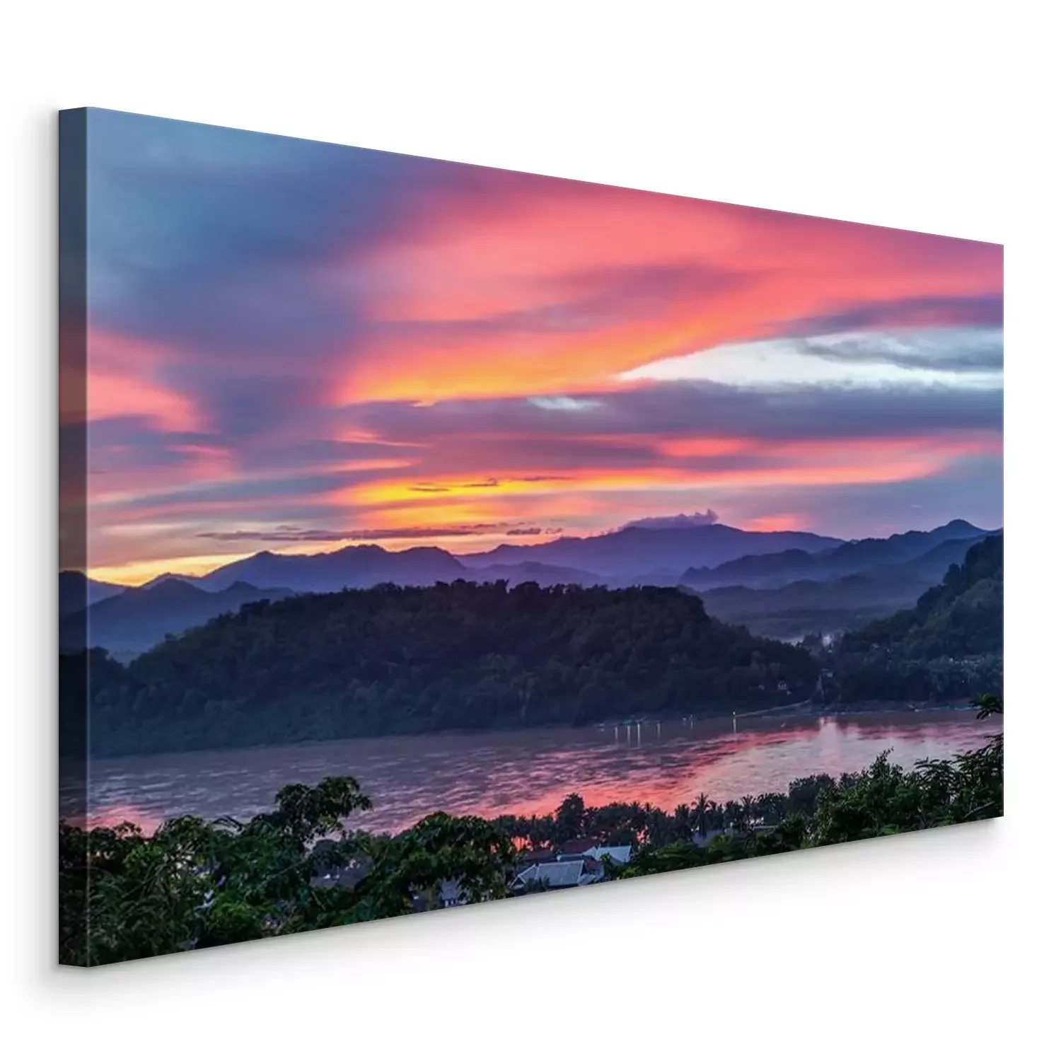 Canvas Zonsondergang over Mekong River, Mount Phousi, Luang Prabang, Laos
