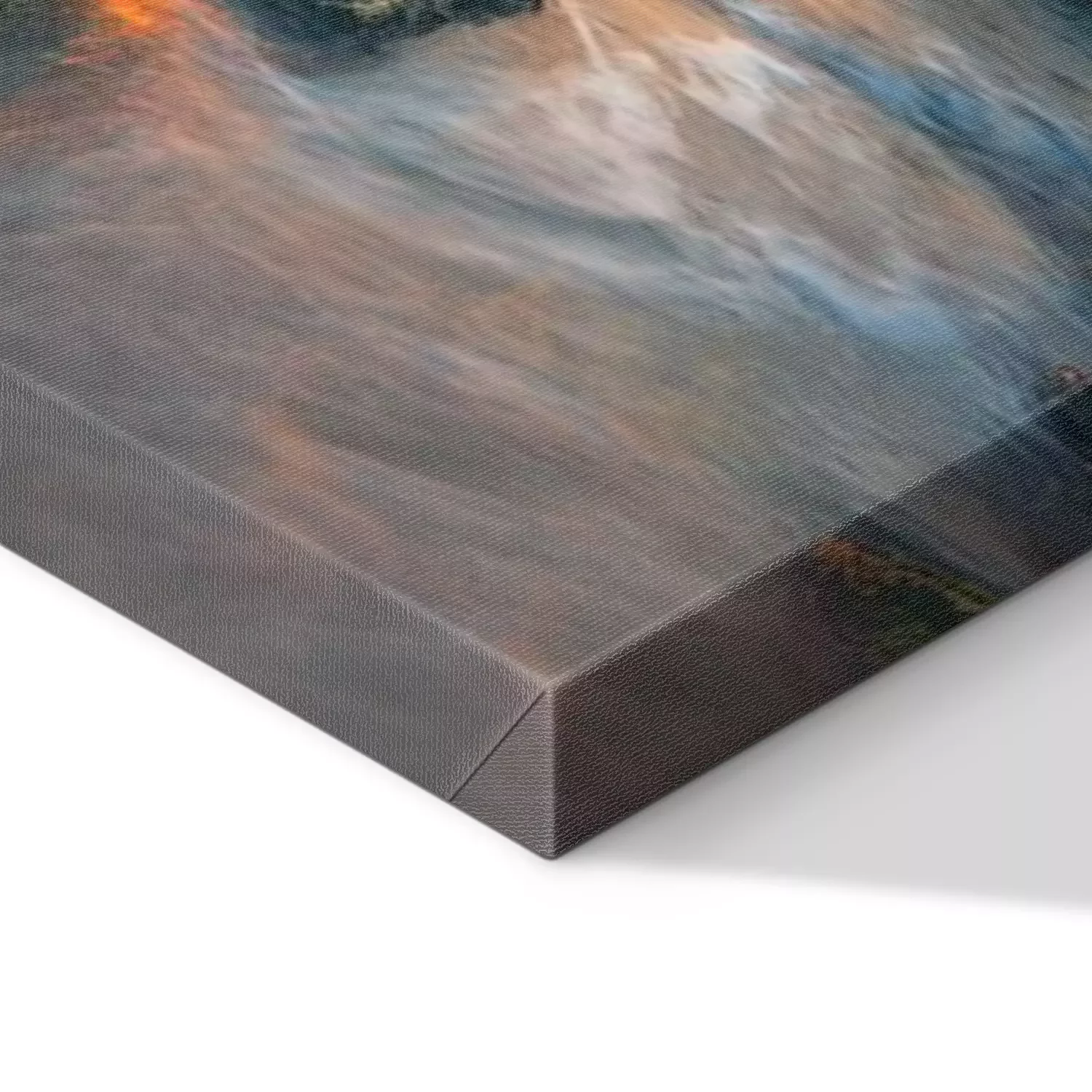 De print wordt aangebracht op hoogwaardig canvas dat op een schildersweefgetouw (spieraam) wordt gespannen. Omdat de print de zijranden bedekt, hoeft het ontwerp niet met een extra kader te worden omlijst. Wij raden ook composities aan die uit meerdere foto's bestaan en zo een coherente compositie vormen.