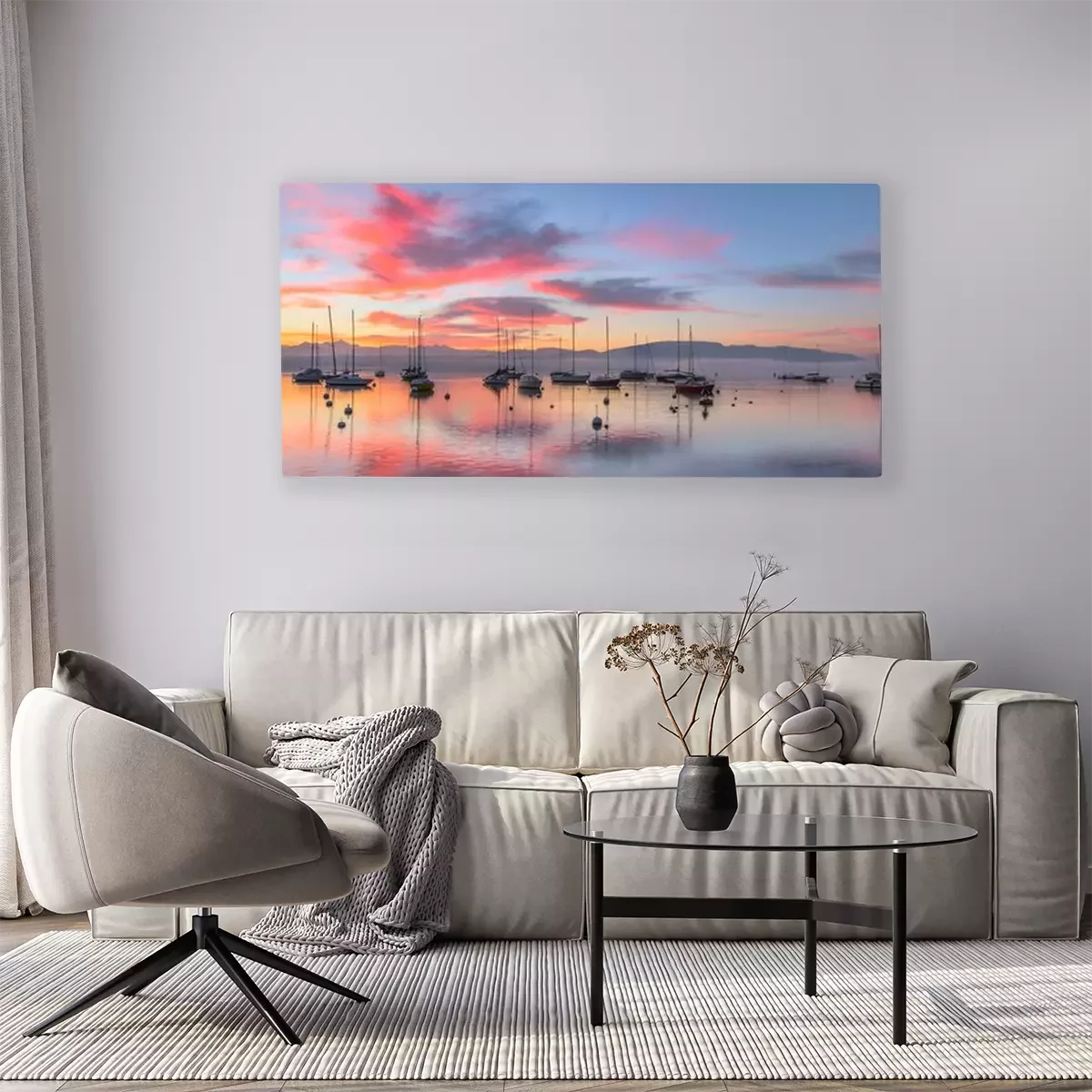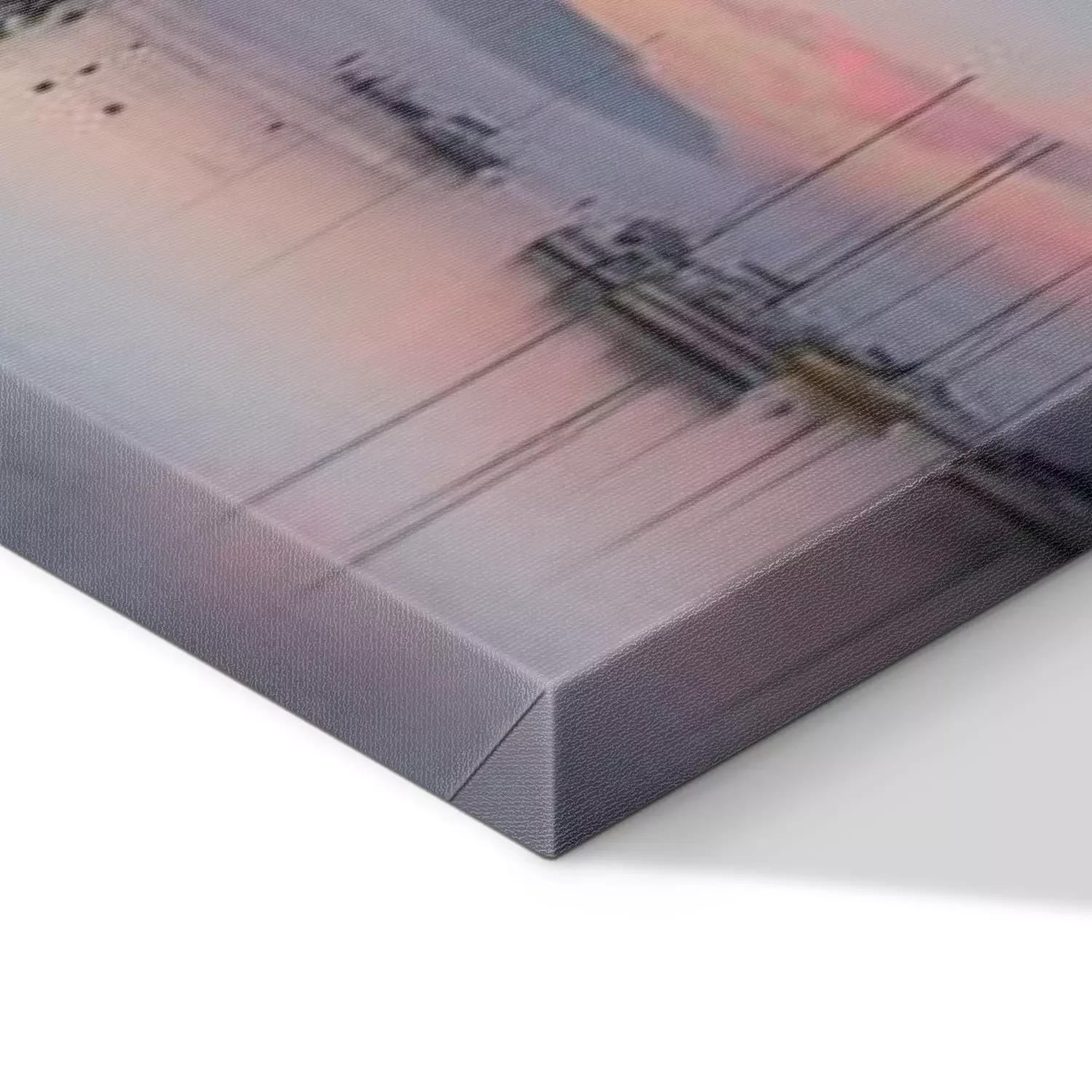 De print wordt aangebracht op hoogwaardig canvas dat op een schildersweefgetouw (spieraam) wordt gespannen. Omdat de print de zijranden bedekt, hoeft het ontwerp niet met een extra kader te worden omlijst. Wij raden ook composities aan die uit meerdere foto's bestaan en zo een coherente compositie vormen.