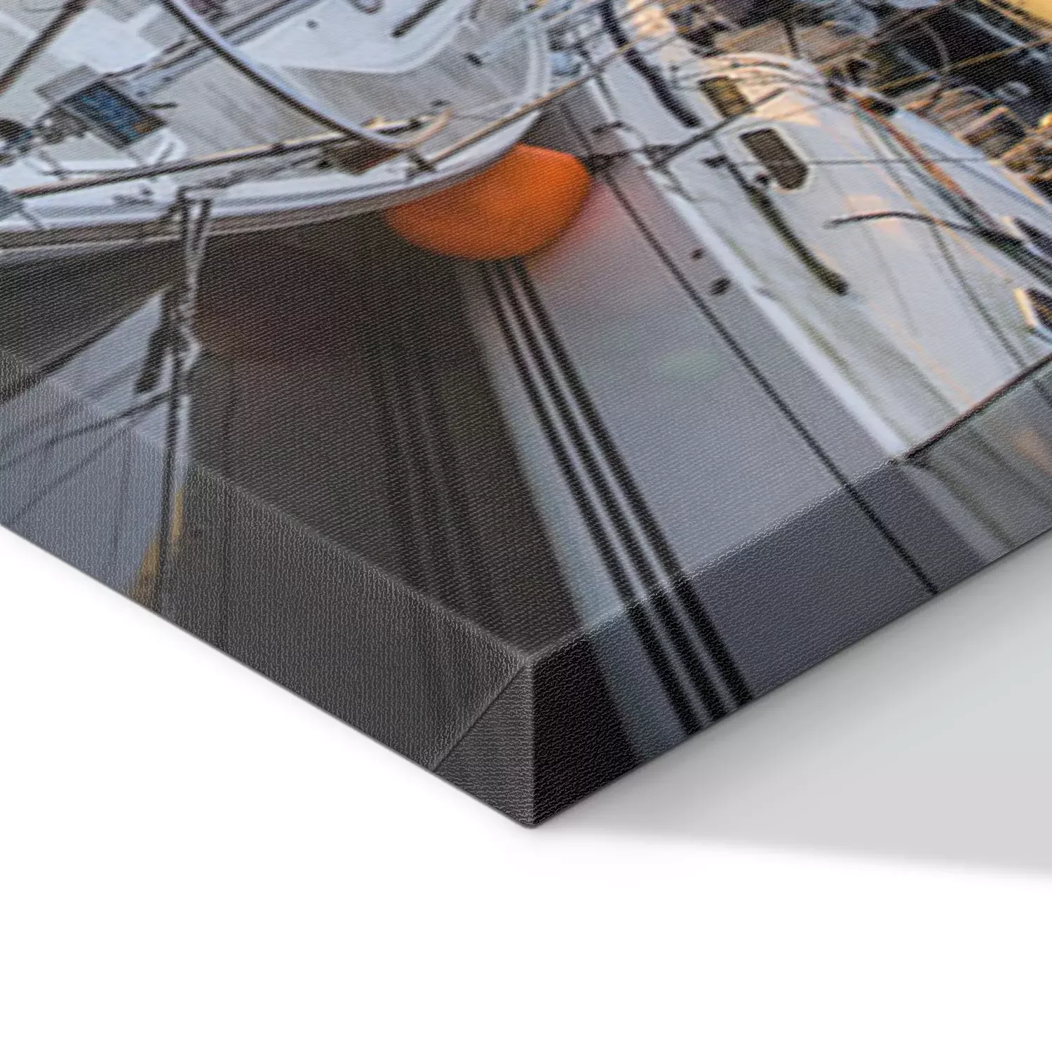 De print wordt aangebracht op hoogwaardig canvas dat op een schildersweefgetouw (spieraam) wordt gespannen. Omdat de print de zijranden bedekt, hoeft het ontwerp niet met een extra kader te worden omlijst. Wij raden ook composities aan die uit meerdere foto's bestaan en zo een coherente compositie vormen.