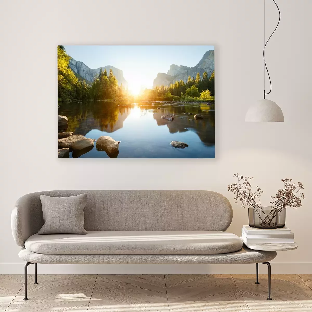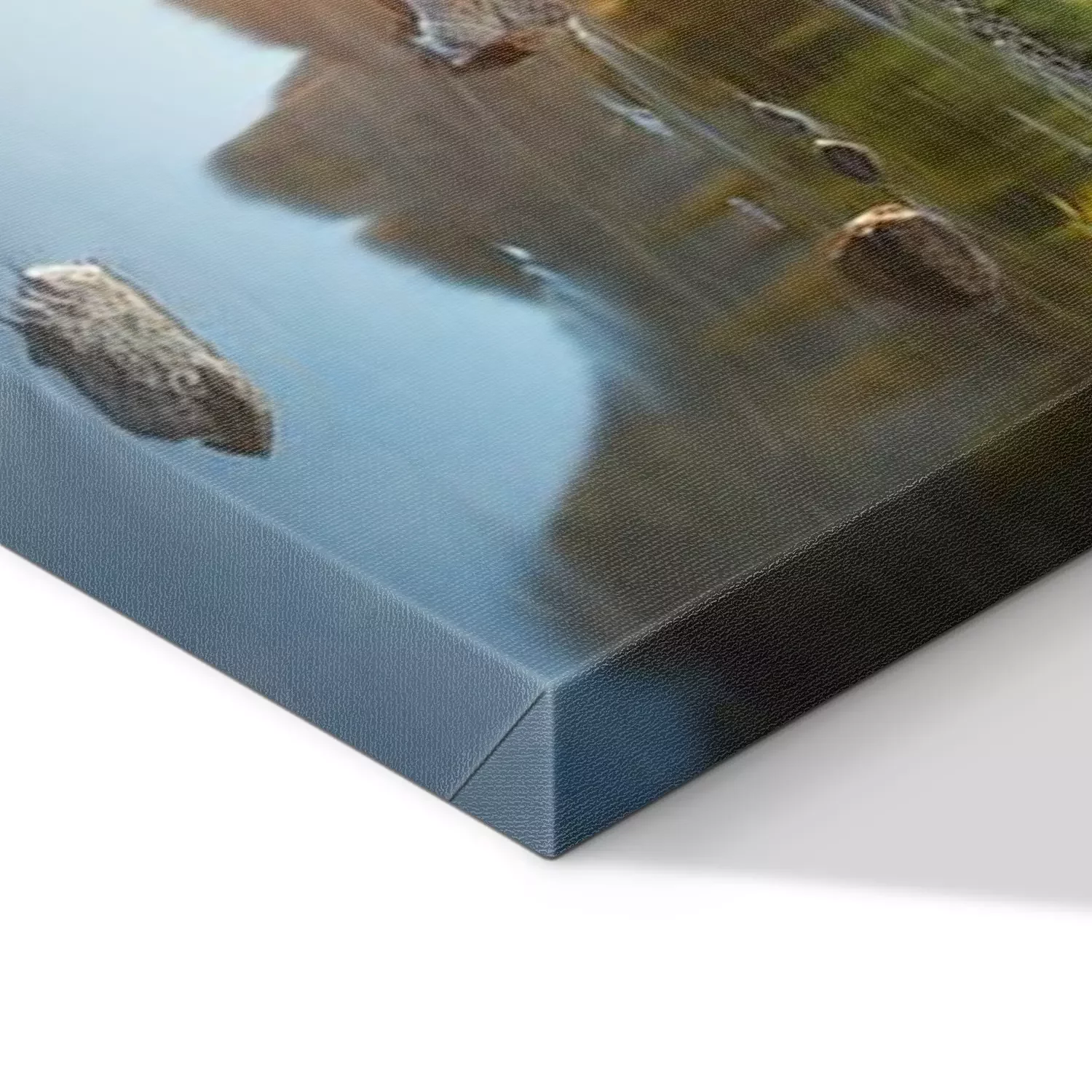 De print wordt aangebracht op hoogwaardig canvas dat op een schildersweefgetouw (spieraam) wordt gespannen. Omdat de print de zijranden bedekt, hoeft het ontwerp niet met een extra kader te worden omlijst. Wij raden ook composities aan die uit meerdere foto's bestaan en zo een coherente compositie vormen.
