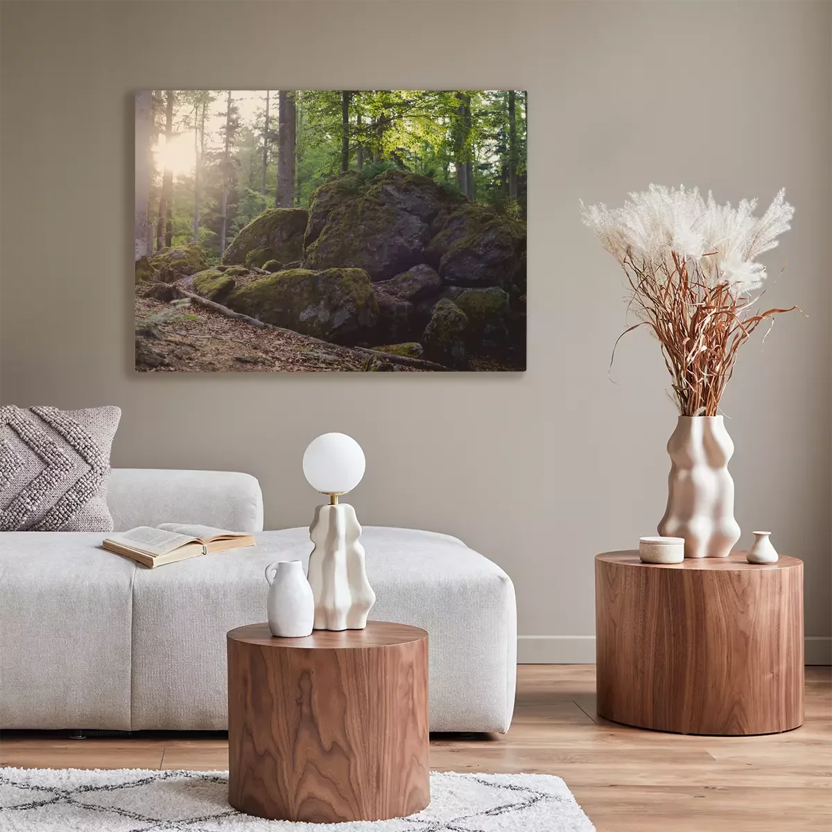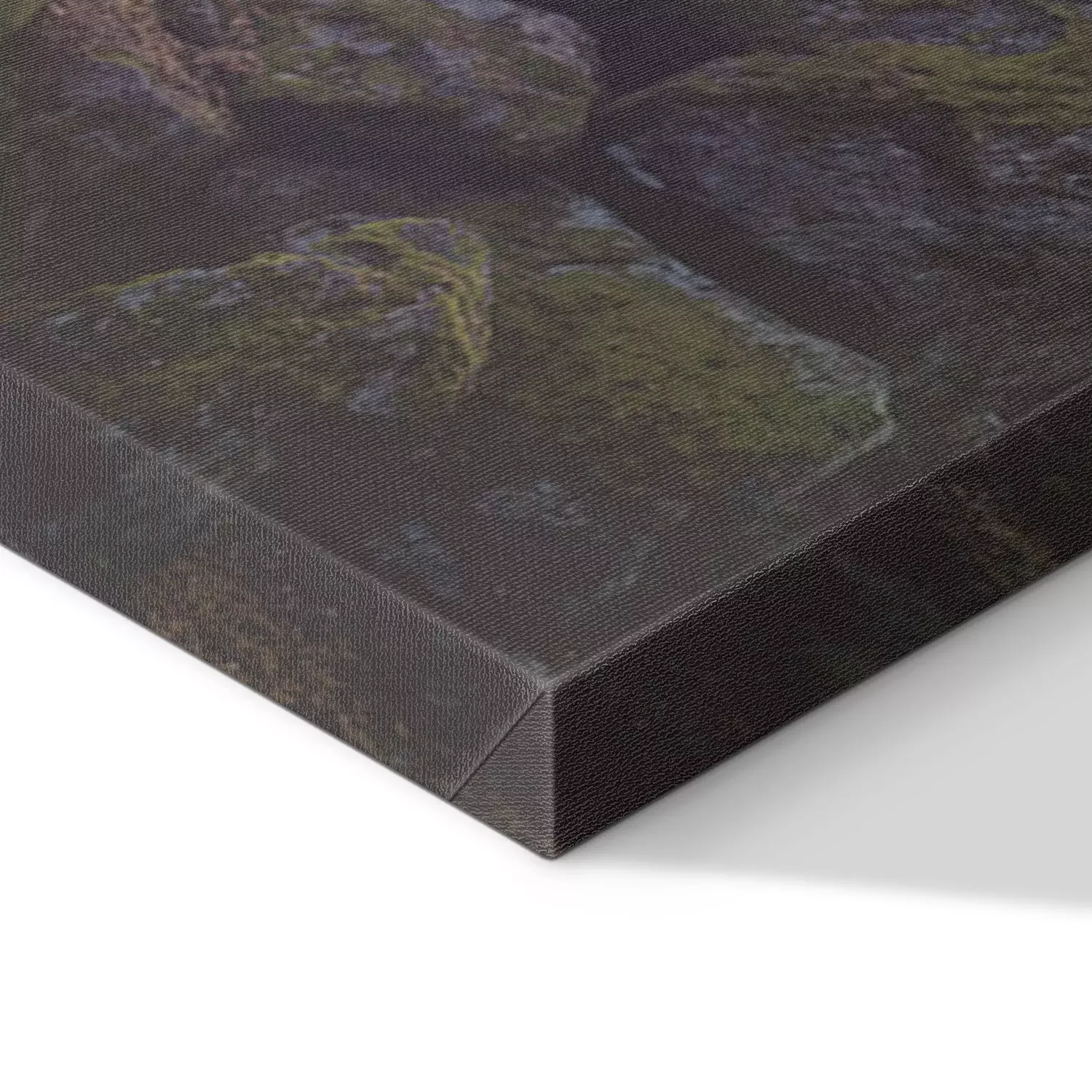 De print wordt aangebracht op hoogwaardig canvas dat op een schildersweefgetouw (spieraam) wordt gespannen. Omdat de print de zijranden bedekt, hoeft het ontwerp niet met een extra kader te worden omlijst. Wij raden ook composities aan die uit meerdere foto's bestaan en zo een coherente compositie vormen.