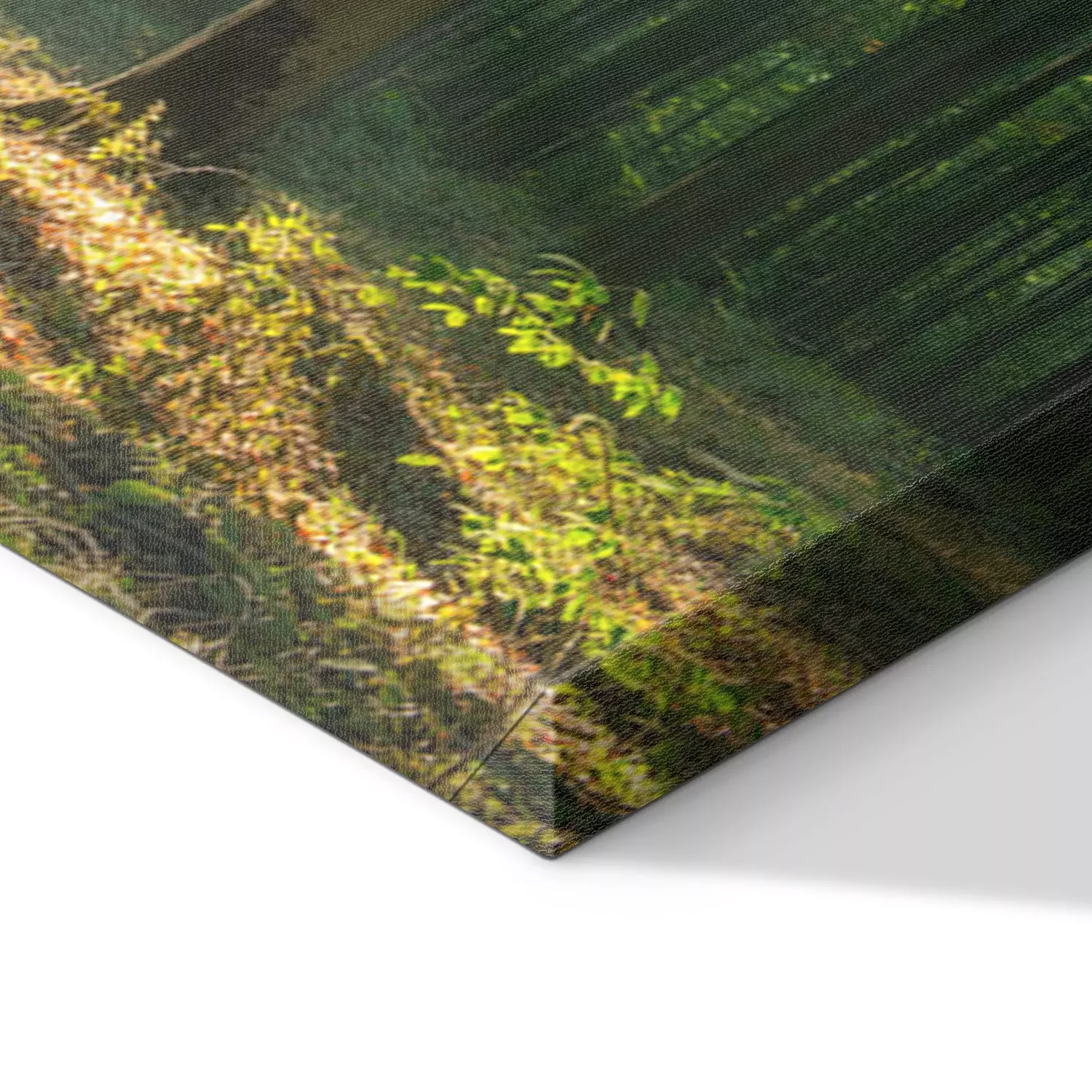 De print wordt aangebracht op hoogwaardig canvas dat op een schildersweefgetouw (spieraam) wordt gespannen. Omdat de print de zijranden bedekt, hoeft het ontwerp niet met een extra kader te worden omlijst. Wij raden ook composities aan die uit meerdere foto's bestaan en zo een coherente compositie vormen.