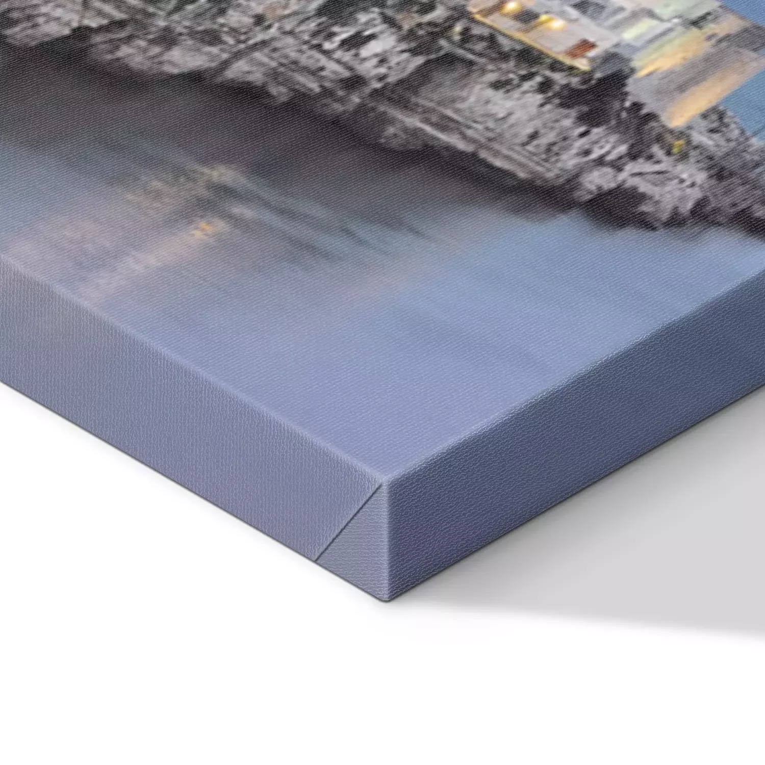 De print wordt aangebracht op hoogwaardig canvas dat op een schildersweefgetouw (spieraam) wordt gespannen. Omdat de print de zijranden bedekt, hoeft het ontwerp niet met een extra kader te worden omlijst. Wij raden ook composities aan die uit meerdere foto's bestaan en zo een coherente compositie vormen.