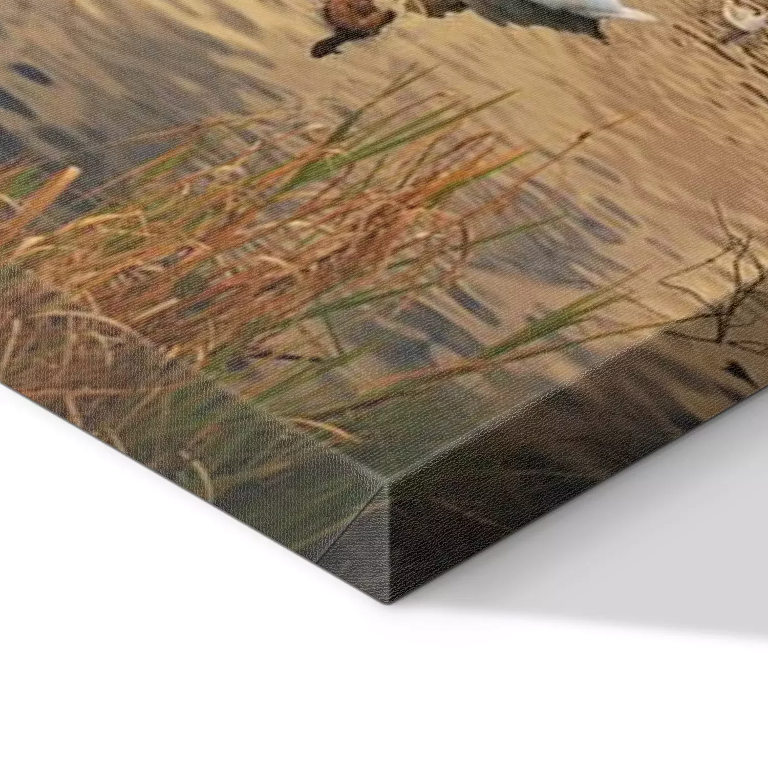 De print wordt aangebracht op hoogwaardig canvas dat op een schildersweefgetouw (spieraam) wordt gespannen. Omdat de print de zijranden bedekt, hoeft het ontwerp niet met een extra kader te worden omlijst. Wij raden ook composities aan die uit meerdere foto's bestaan en zo een coherente compositie vormen.