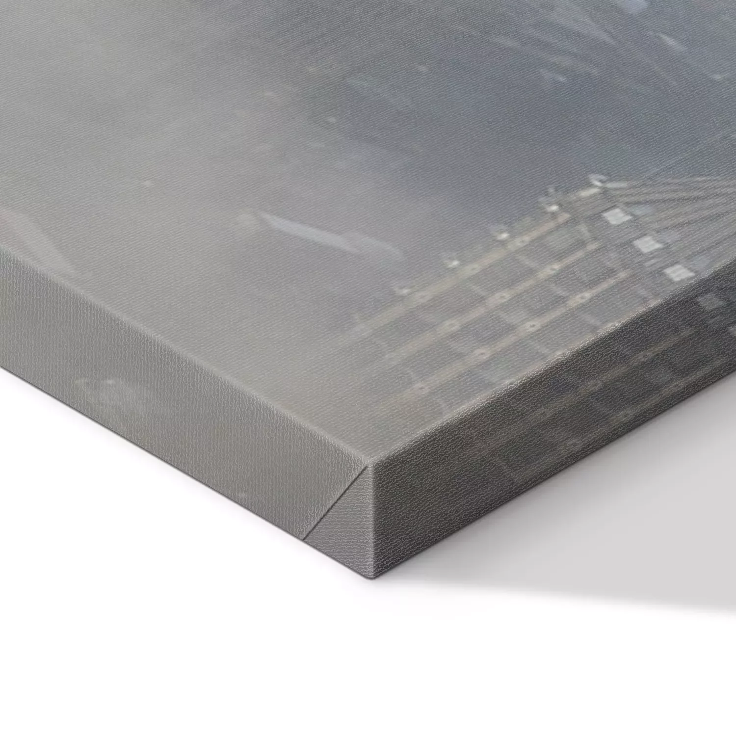 De print wordt aangebracht op hoogwaardig canvas dat op een schildersweefgetouw (spieraam) wordt gespannen. Omdat de print de zijranden bedekt, hoeft het ontwerp niet met een extra kader te worden omlijst. Wij raden ook composities aan die uit meerdere foto's bestaan en zo een coherente compositie vormen.