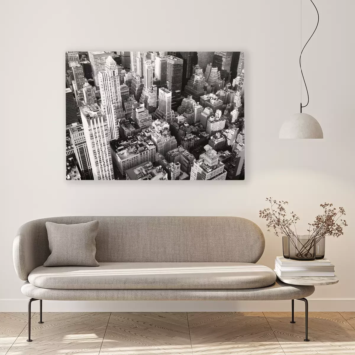 De print wordt aangebracht op hoogwaardig canvas dat op een schildersweefgetouw (spieraam) wordt gespannen. Omdat de print de zijranden bedekt, hoeft het ontwerp niet met een extra kader te worden omlijst. Wij raden ook composities aan die uit meerdere foto's bestaan en zo een coherente compositie vormen.