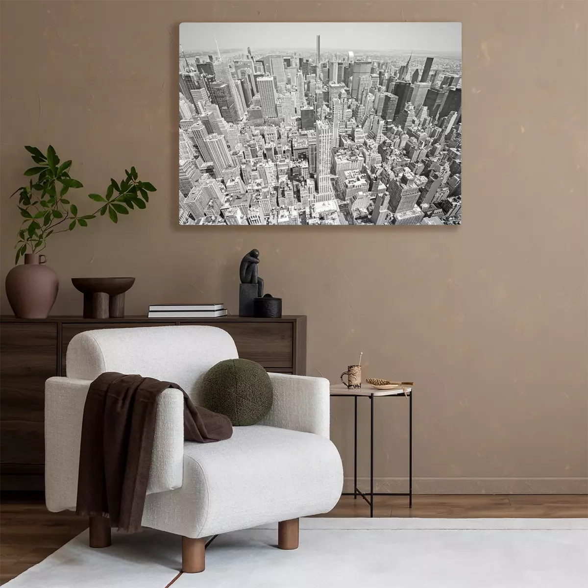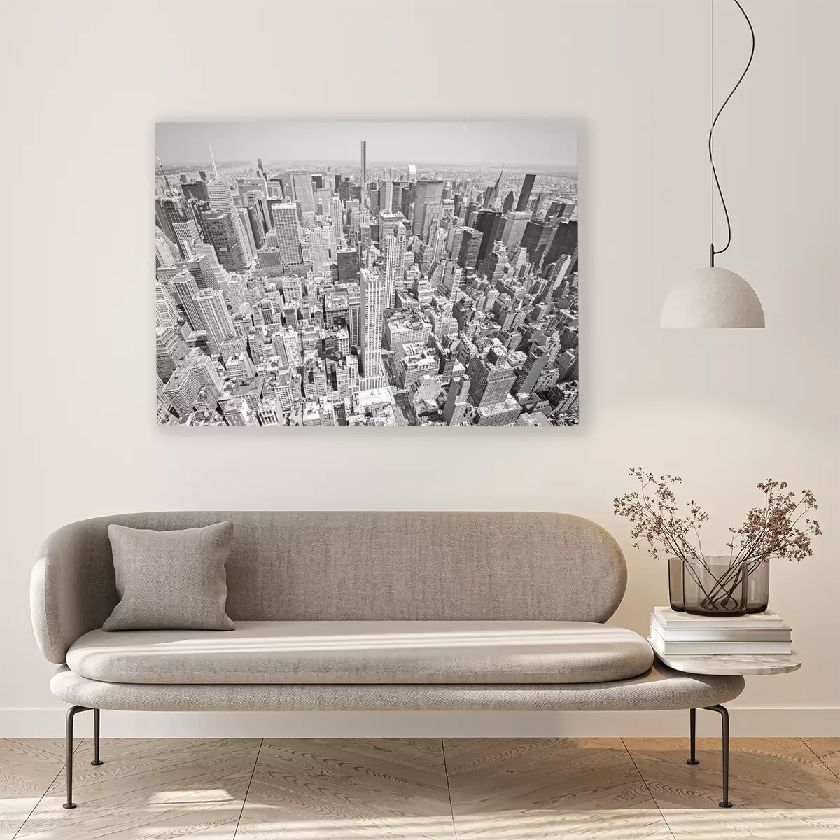 Canvas: Zwart-wit afgezwakt Luchtfoto van Manhattan, NYC.