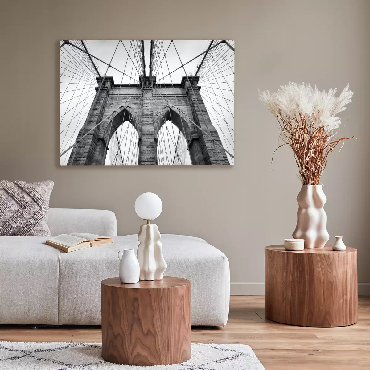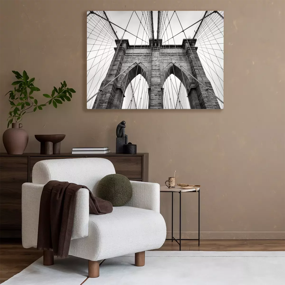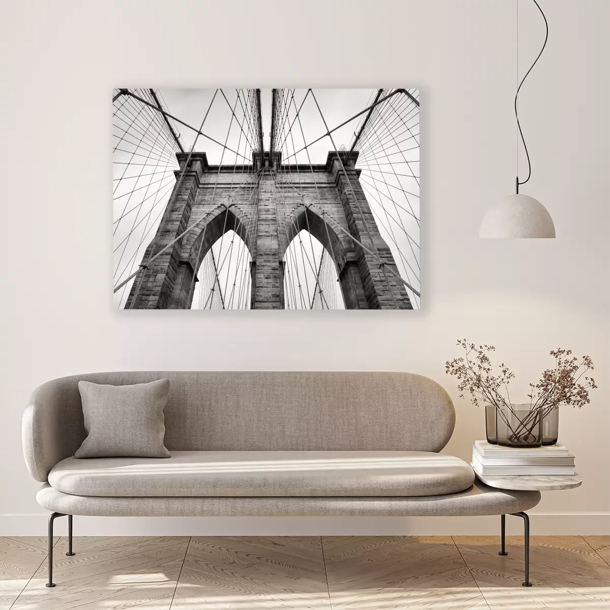 Brooklyn Bridge New York City close up architectural detail in timeless black and white