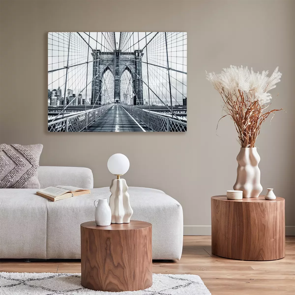 De print wordt aangebracht op hoogwaardig canvas dat op een schildersweefgetouw (spieraam) wordt gespannen. Omdat de print de zijranden bedekt, hoeft het ontwerp niet met een extra kader te worden omlijst. Wij raden ook composities aan die uit meerdere foto's bestaan en zo een coherente compositie vormen.