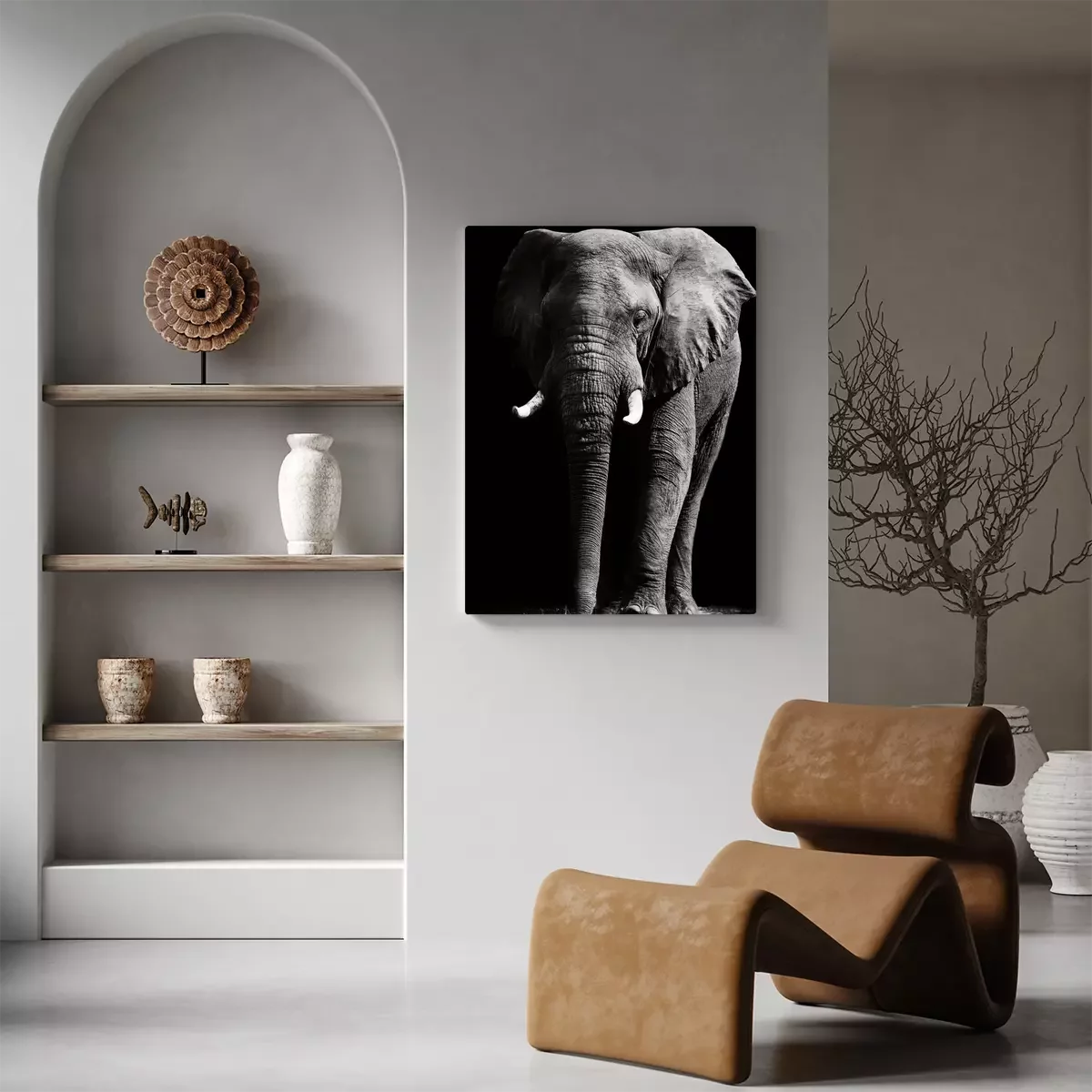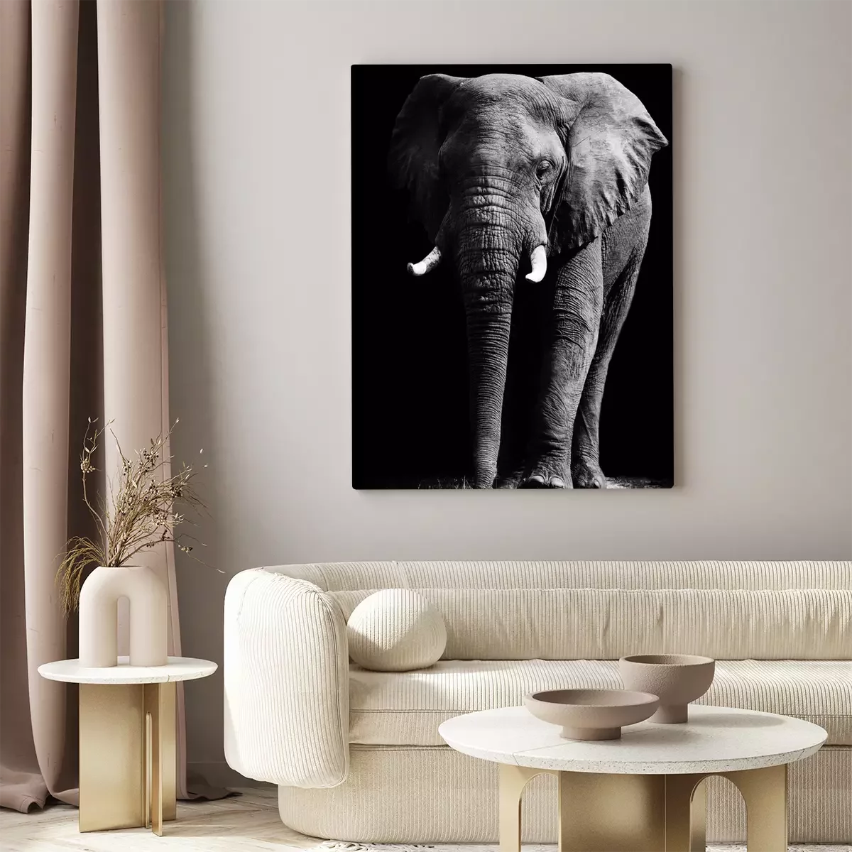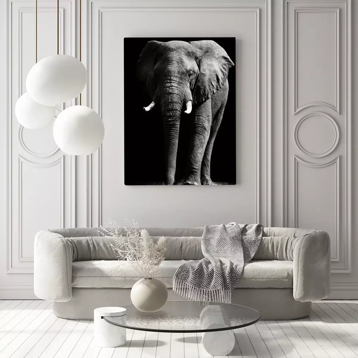 Canvas: Zwart-wit dier met een slurf
