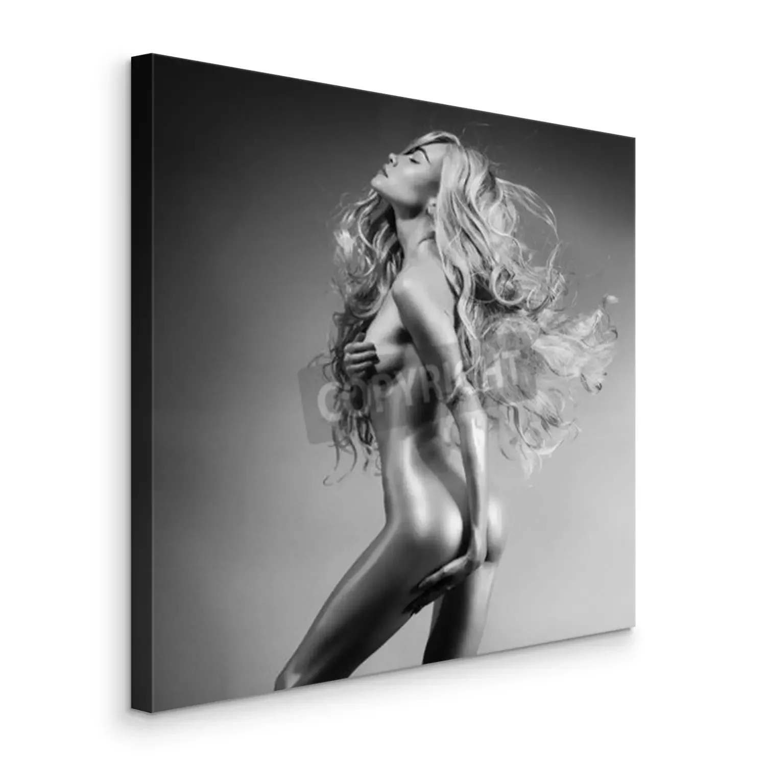 Canvas Zwart-wit fashion art photo of seksuele schoonheidsblonde