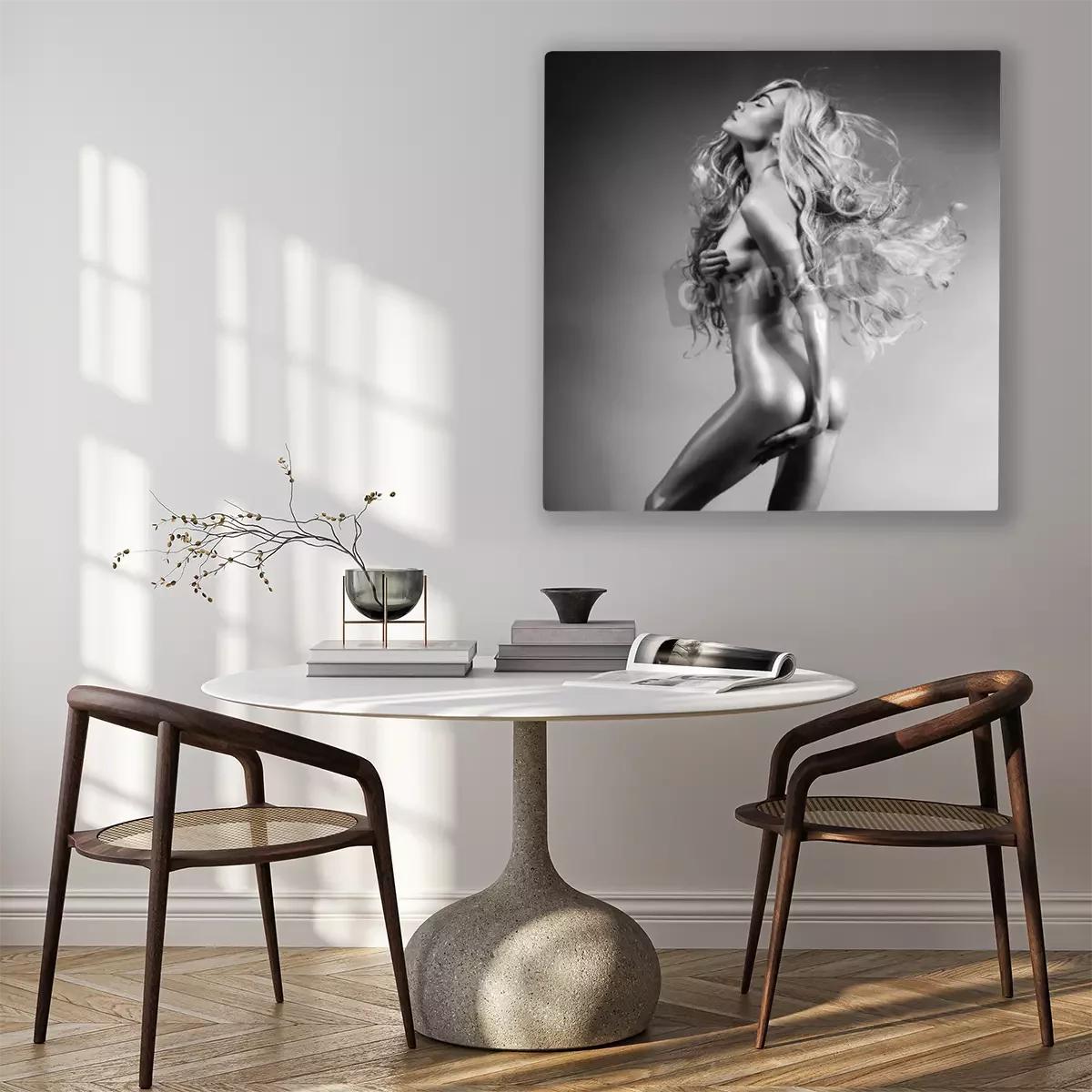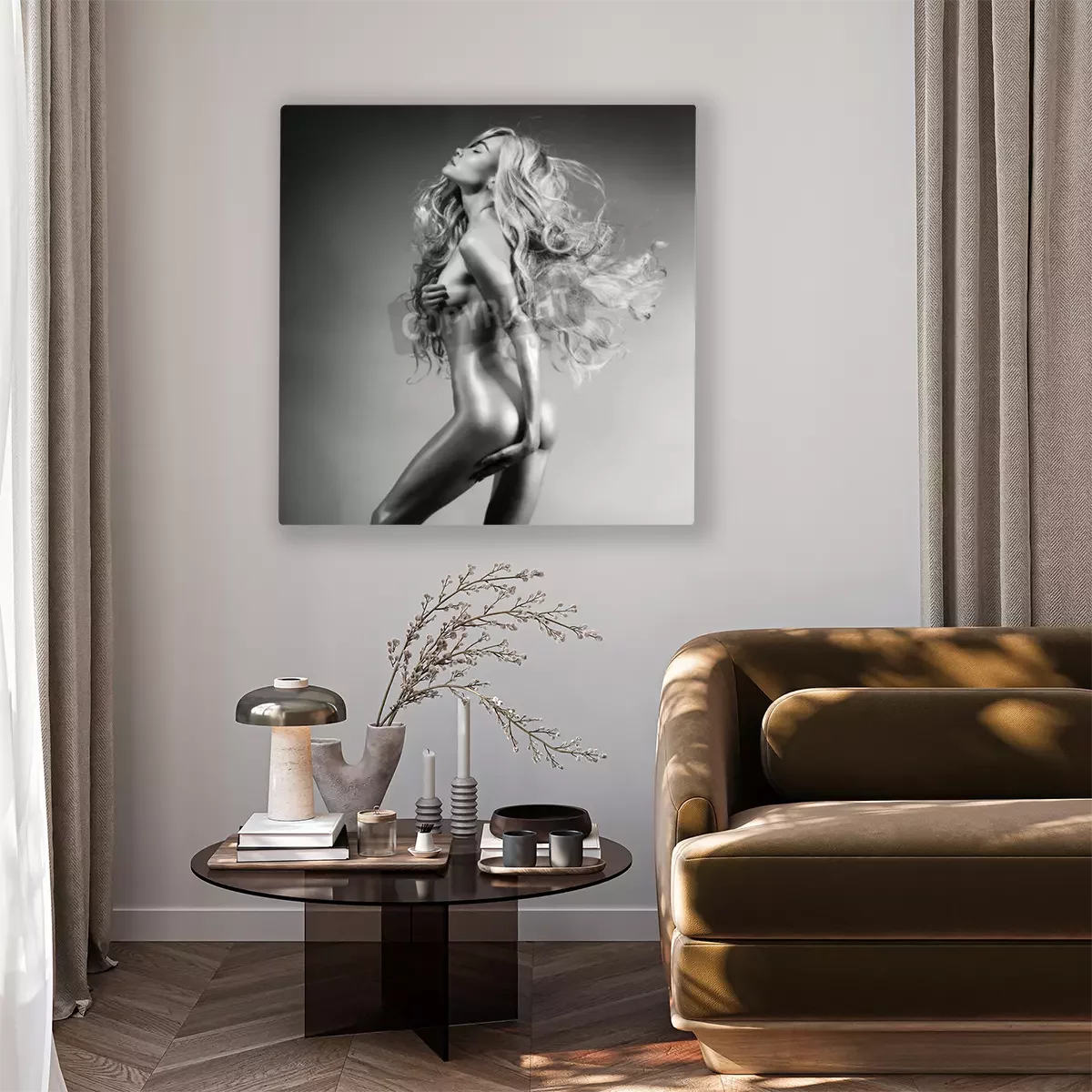 Canvas: Zwart-wit fashion art photo of seksuele schoonheidsblonde