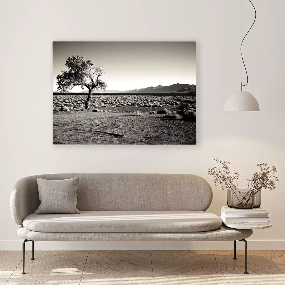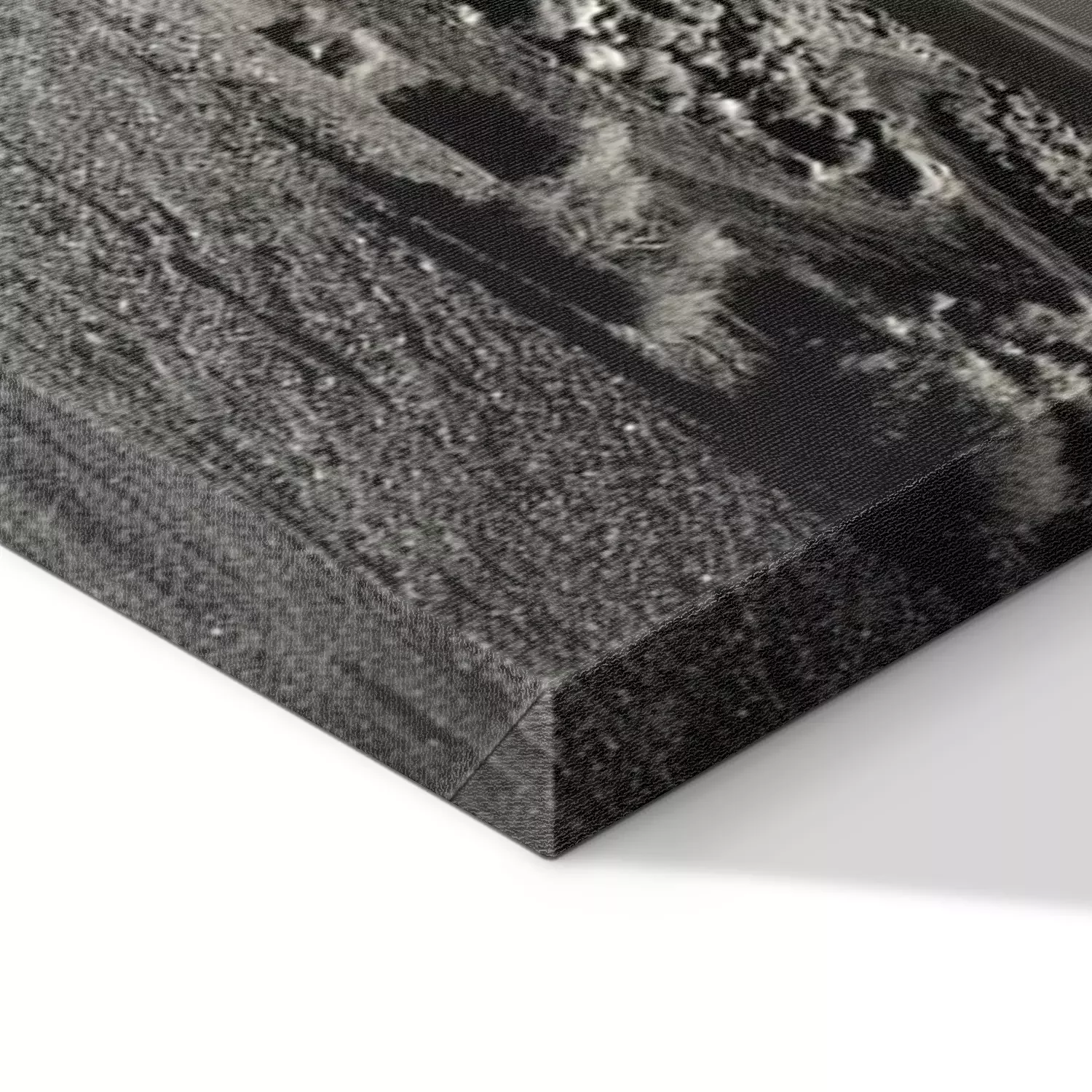 De print wordt aangebracht op hoogwaardig canvas dat op een schildersweefgetouw (spieraam) wordt gespannen. Omdat de print de zijranden bedekt, hoeft het ontwerp niet met een extra kader te worden omlijst. Wij raden ook composities aan die uit meerdere foto's bestaan en zo een coherente compositie vormen.